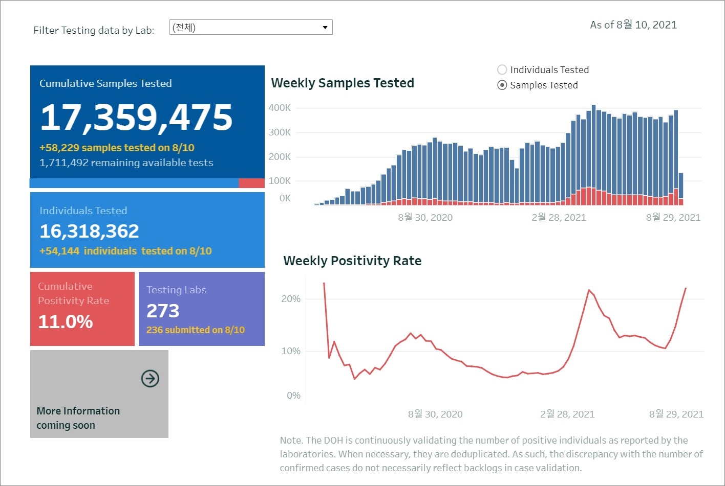 - 누적검사수(cumulative sample tested) : 17,359,475