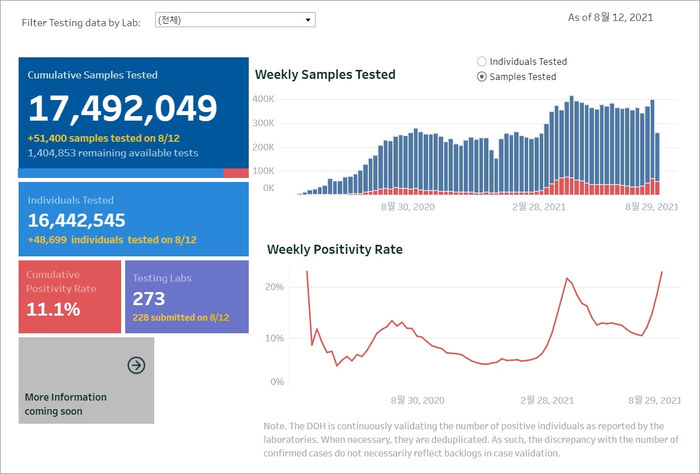 - 누적검사수(cumulative sample tested) : 17,492,049