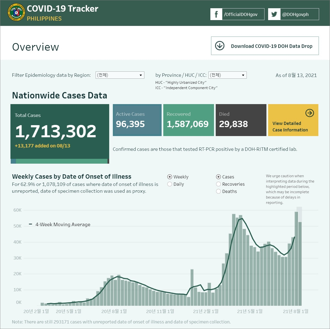 ■ 필리핀 코로나19 발생 현황 (2021년 8월 13일 현재)