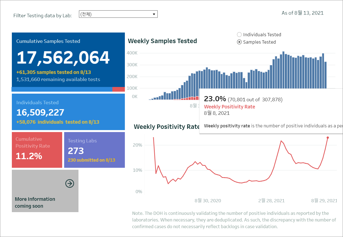 - 누적검사수(cumulative sample tested) : 17,562,064