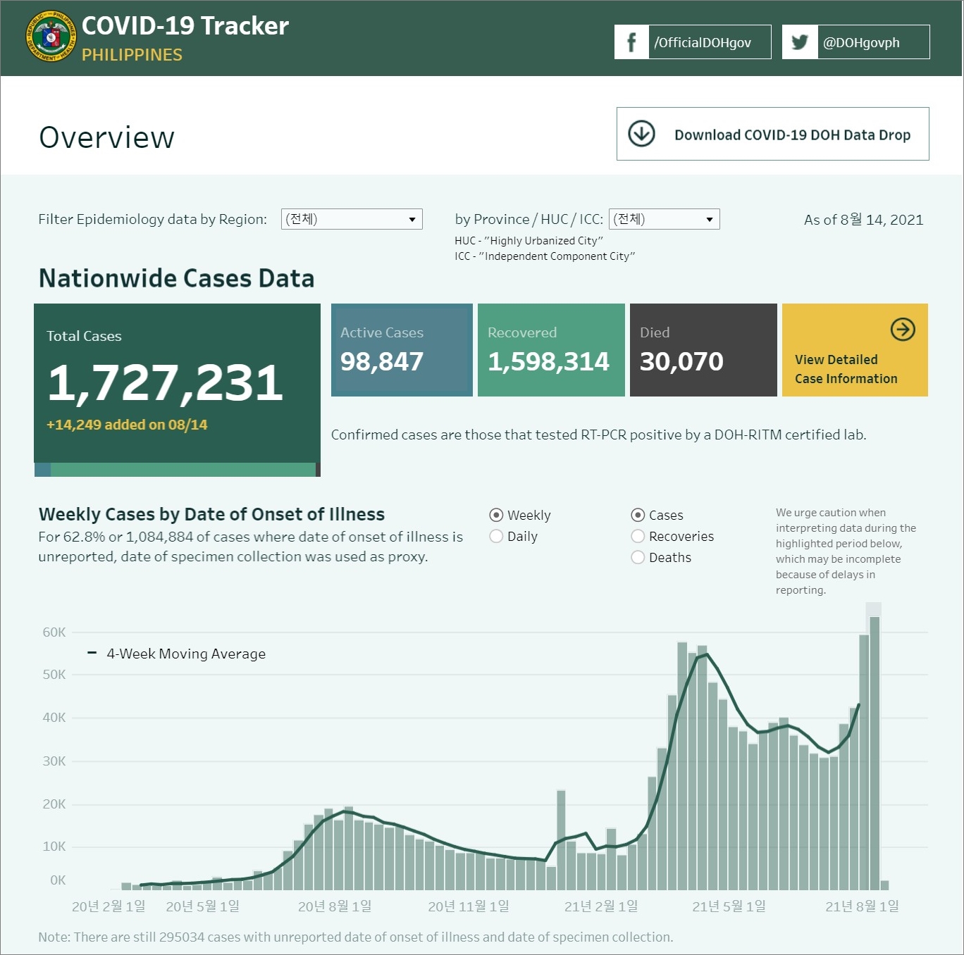 ■ 필리핀 코로나19 발생 현황 (2021년 8월 14일 현재)