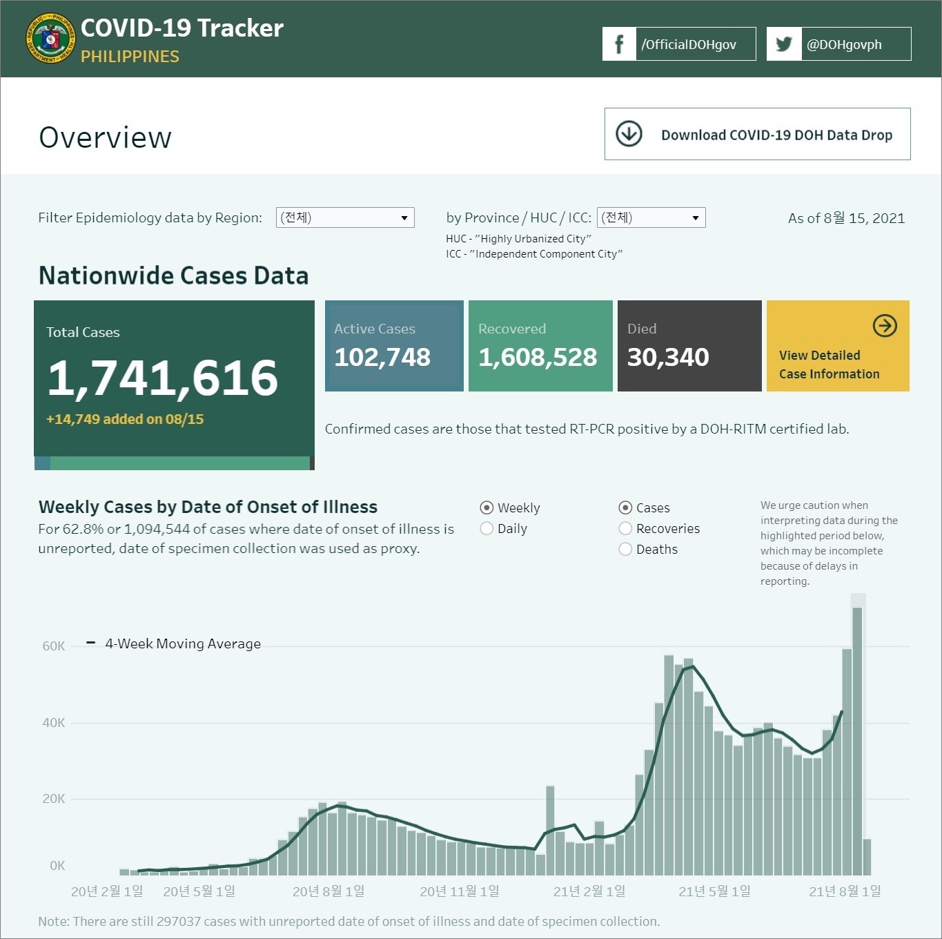 ■ 필리핀 코로나19 발생 현황 (2021년 8월 15일 현재)