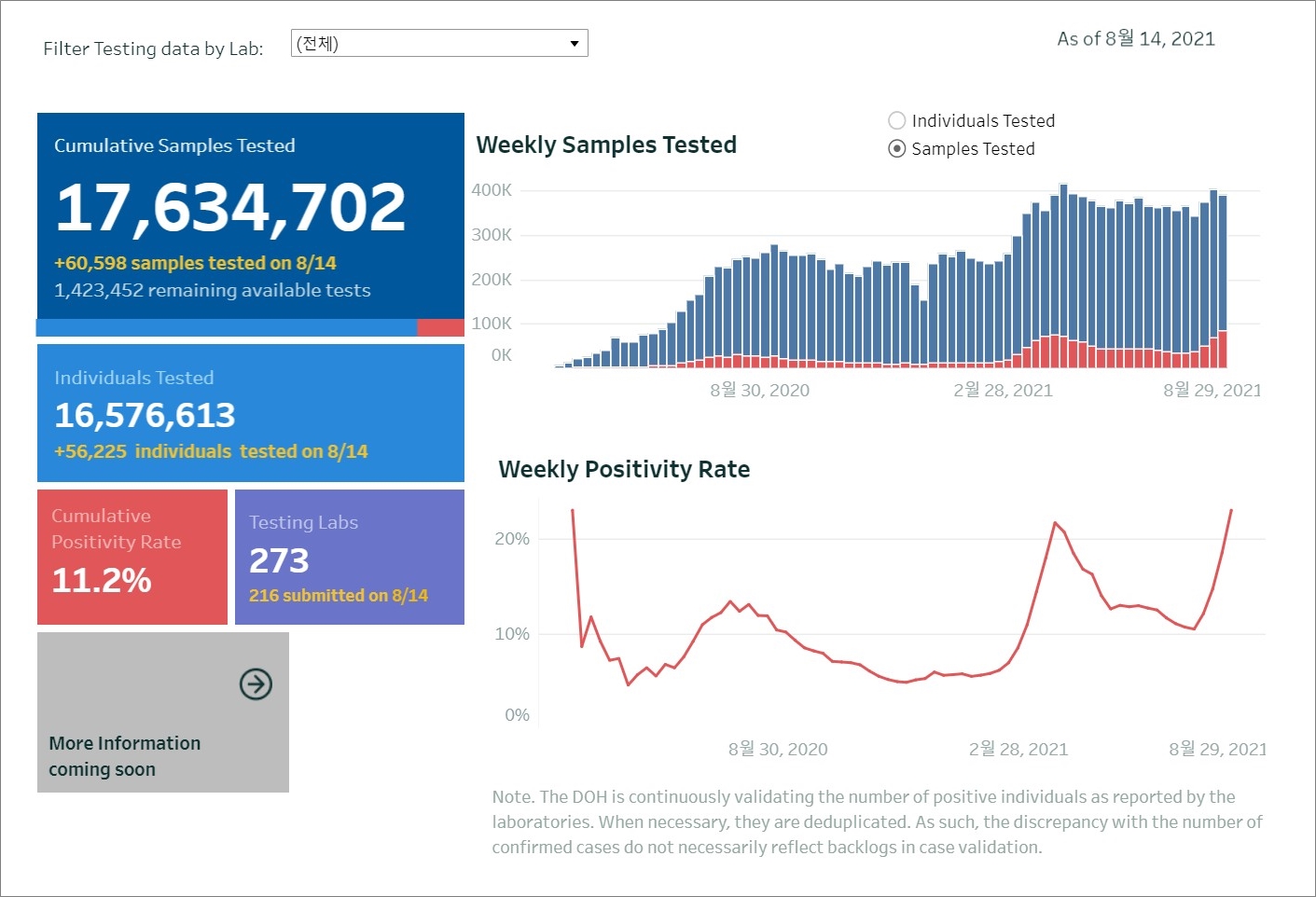 - 누적검사수(cumulative sample tested) : 17,634,702