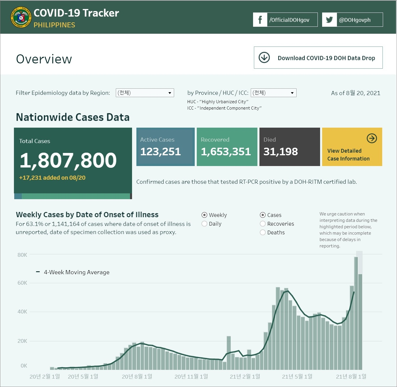 ■ 필리핀 코로나19 발생 현황 (2021년 8월 20일 현재)