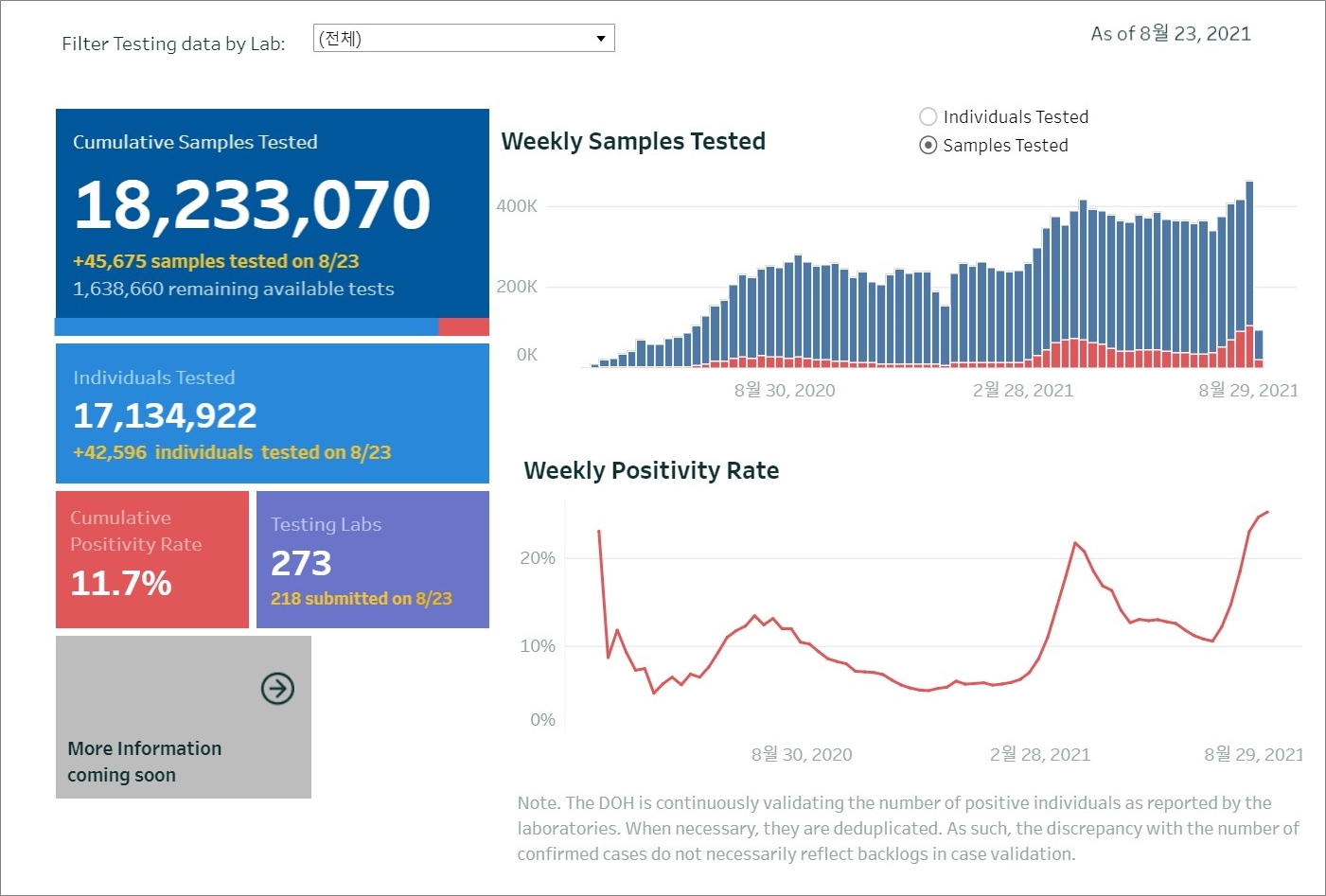 - 누적검사수(cumulative sample tested) : 18,233,070