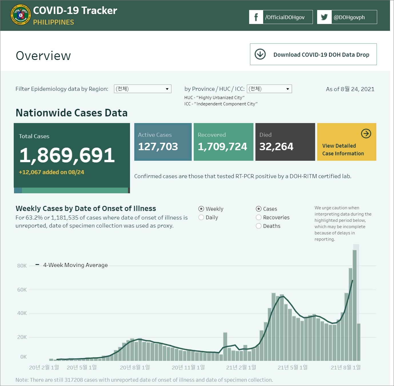 ■ 필리핀 코로나19 발생 현황 (2021년 8월 24일 현재)