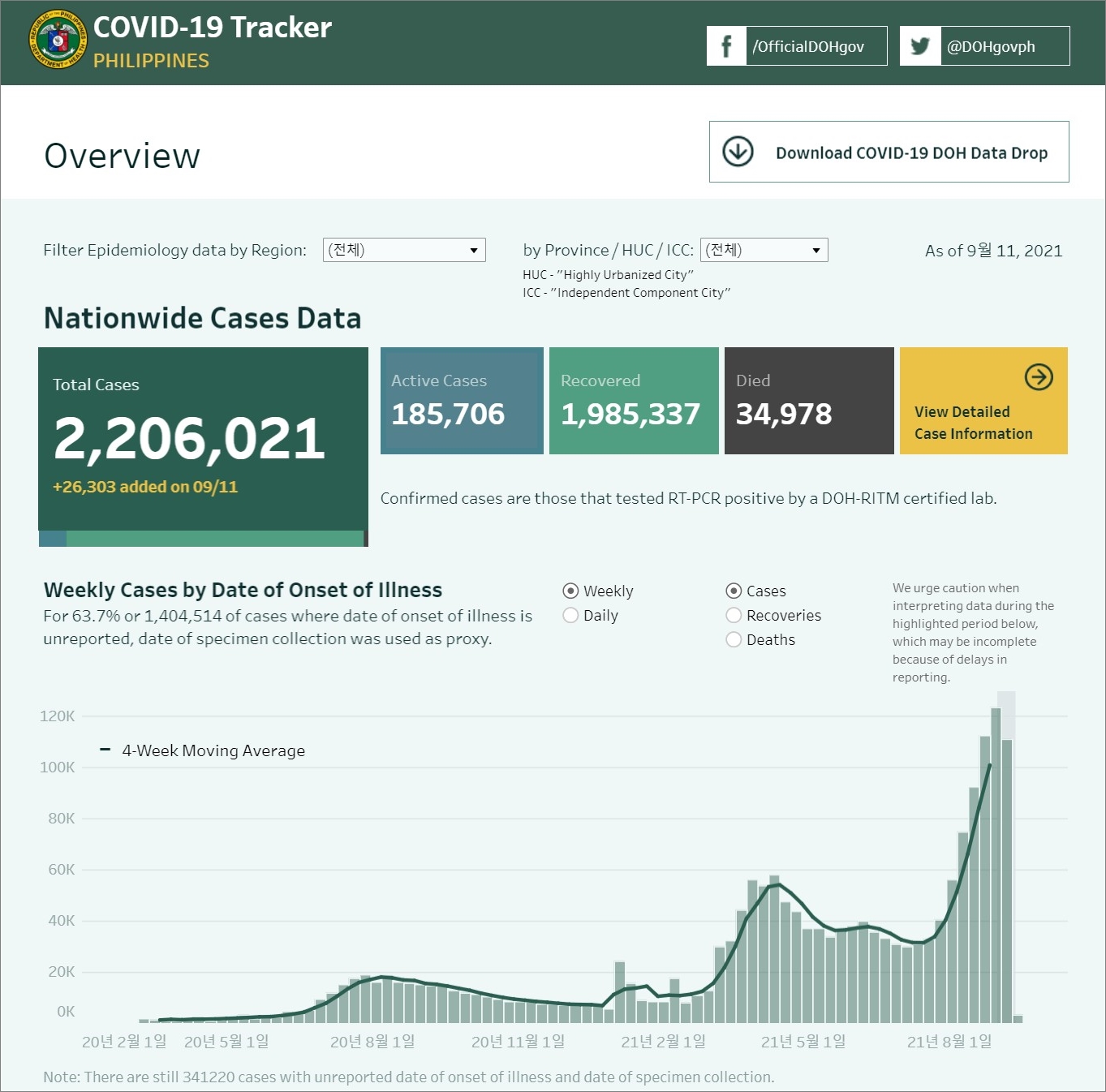 ■ 필리핀 코로나19 발생 현황 (2021년 9월 11일 현재)