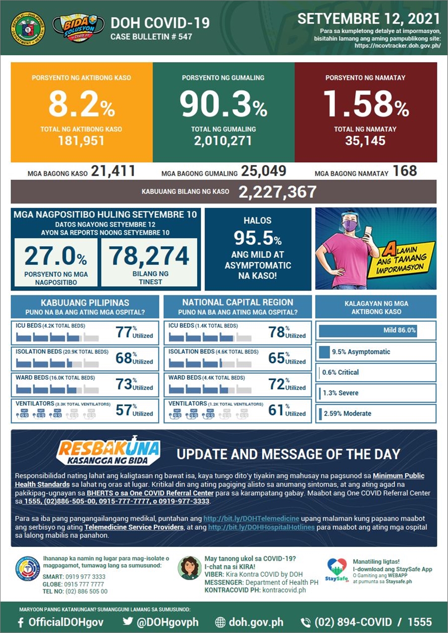 ■ 필리핀 코로나19 발생 현황 (2021년 9월 12일 현재)