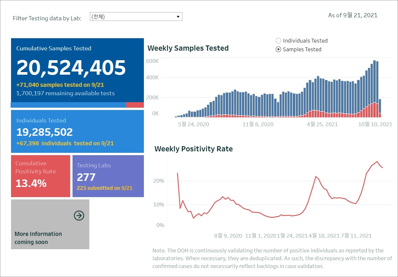 - 누적검사수(cumulative sample tested) : 20,524,405