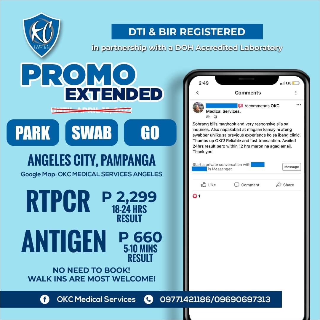 메트로 마닐라 지역의 경우 워낙 검사시설이 많아서 페이스북만 잠깐 검색해도 엄청나게 많은 검사소를 찾을 수 있다. 검사를 받을 때는 검사 방법이 RT-PCR 방식인지와 검사 결과를 언제 받을 수 있는지 재확인하는 것이 좋다.