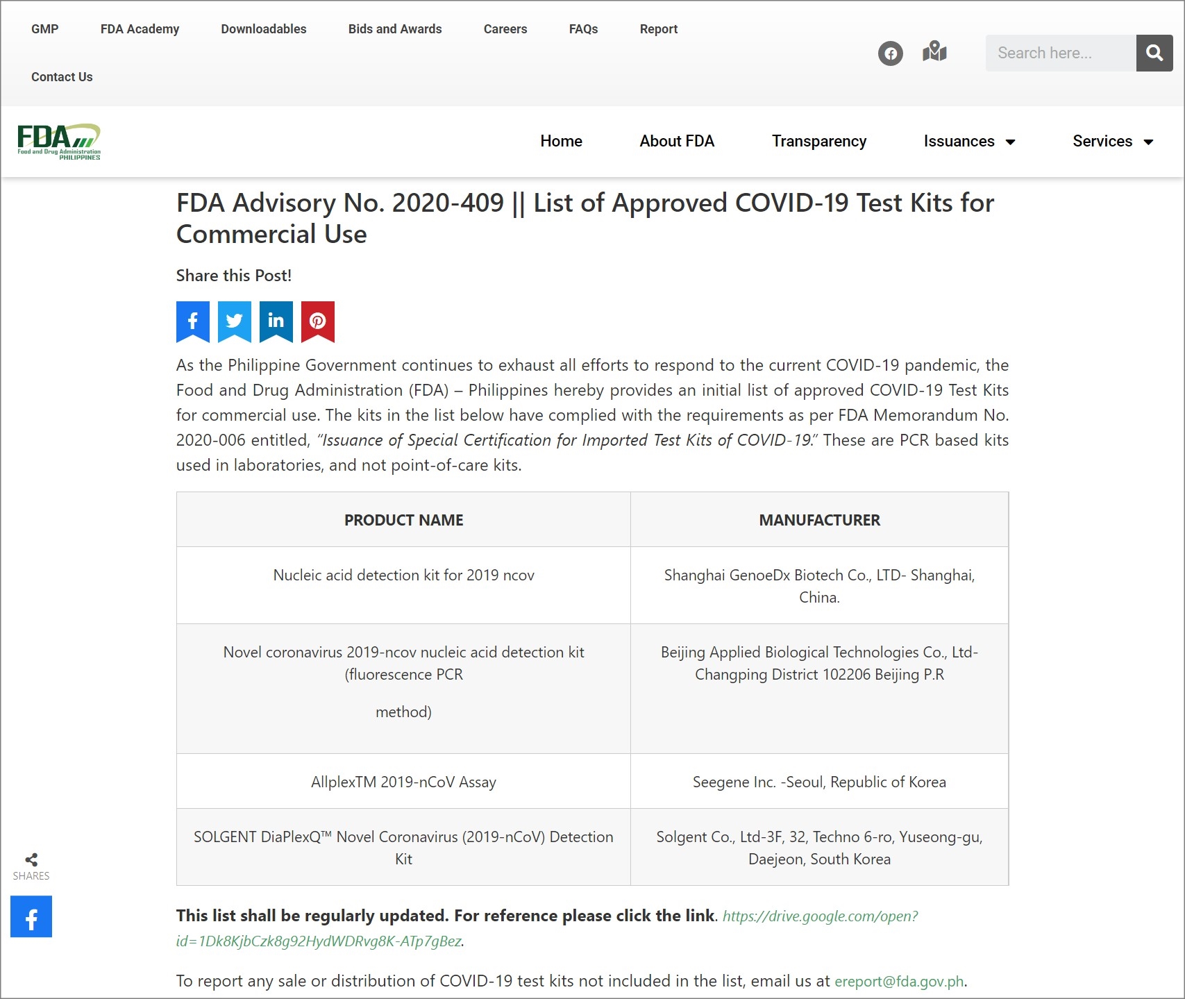· List of Approved COVID-19 Test Kits for Commercial Use - Food and Drug Administration