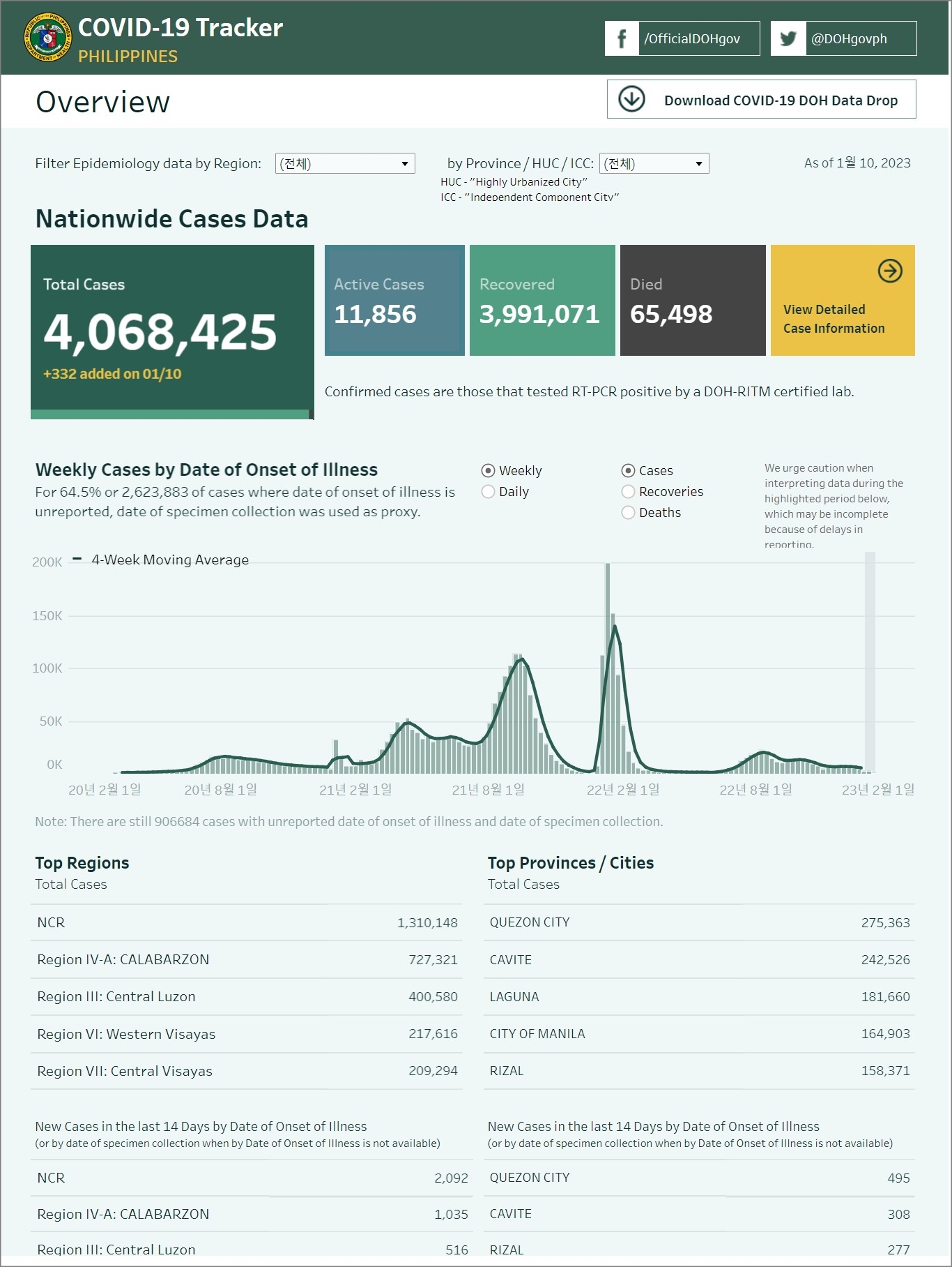 필리핀 코로나19 발생 현황 (2023년 1월 10일 현재)