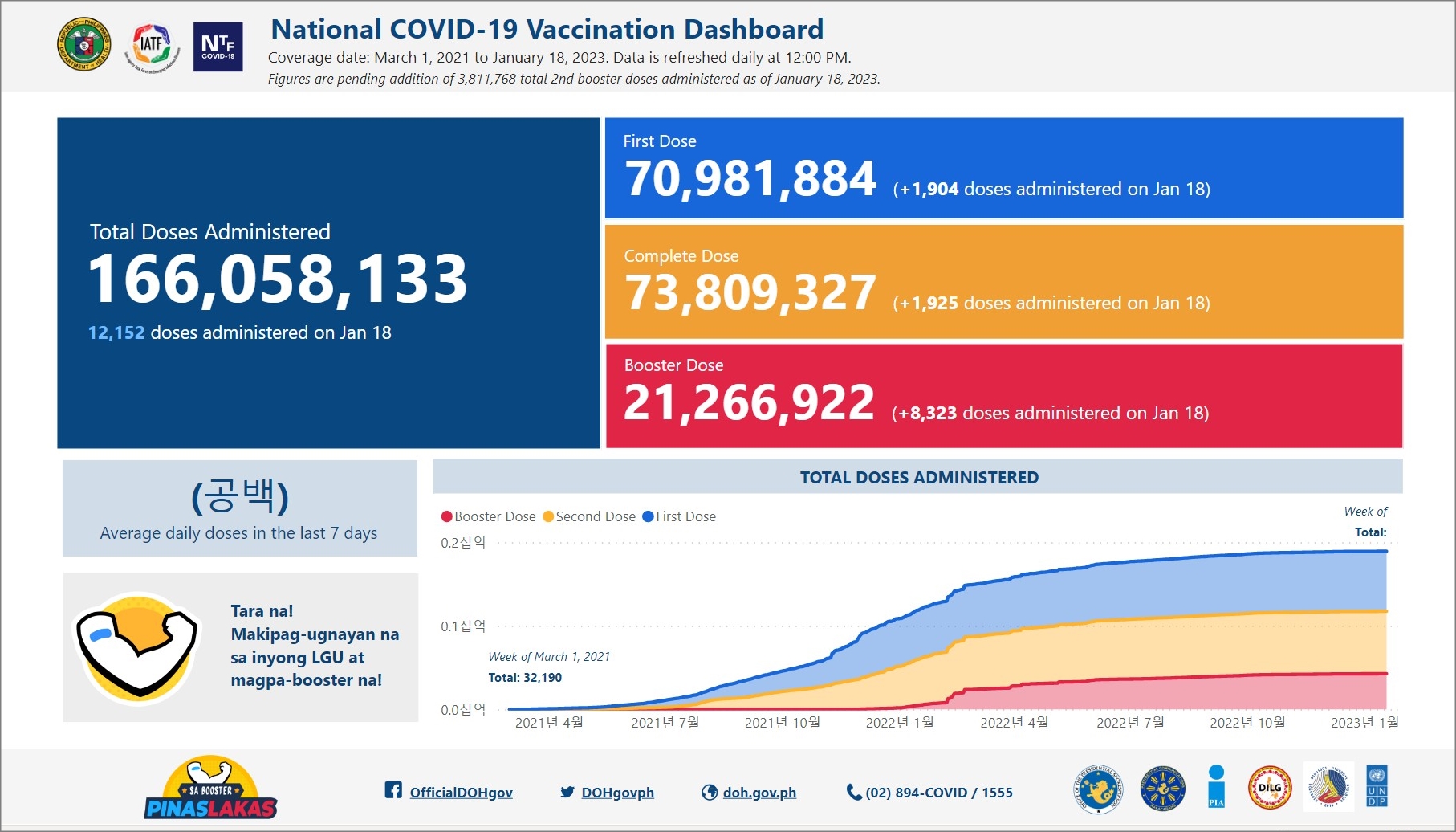 필리핀 코로나19 백신 예방접종 현황 (2023년 1월 18일 현재)
