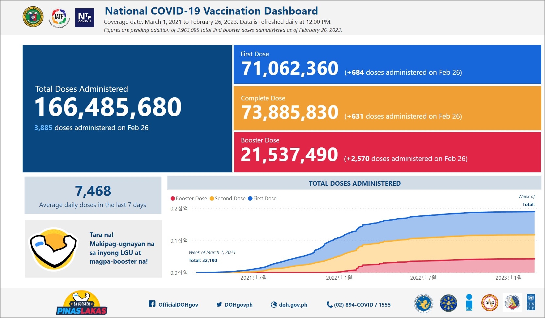 필리핀 코로나19 백신 예방접종 현황 (2023년 2월 26일 현재)