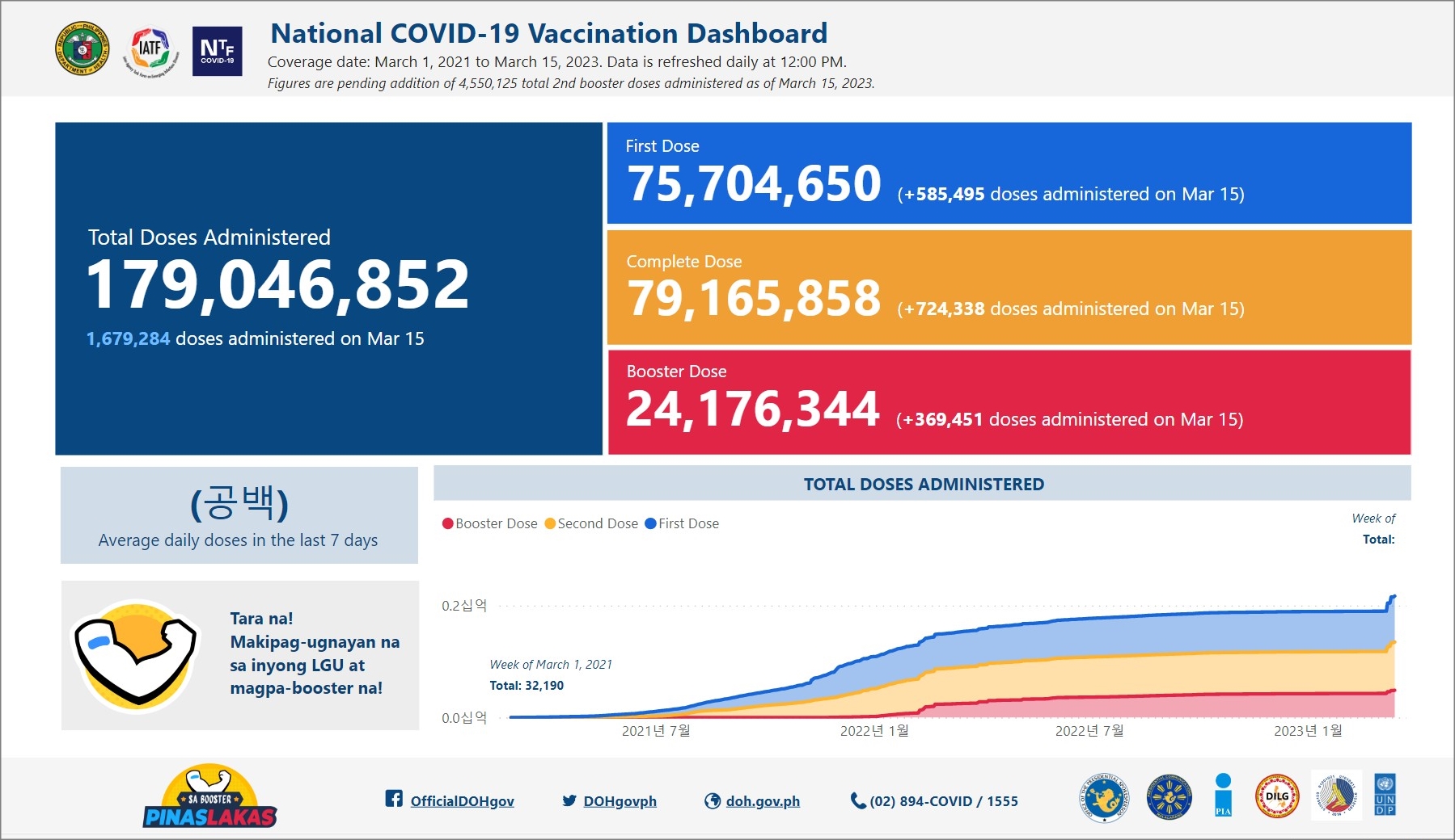 필리핀 코로나19 백신 예방접종 현황 (2023년 3월 15일 현재)