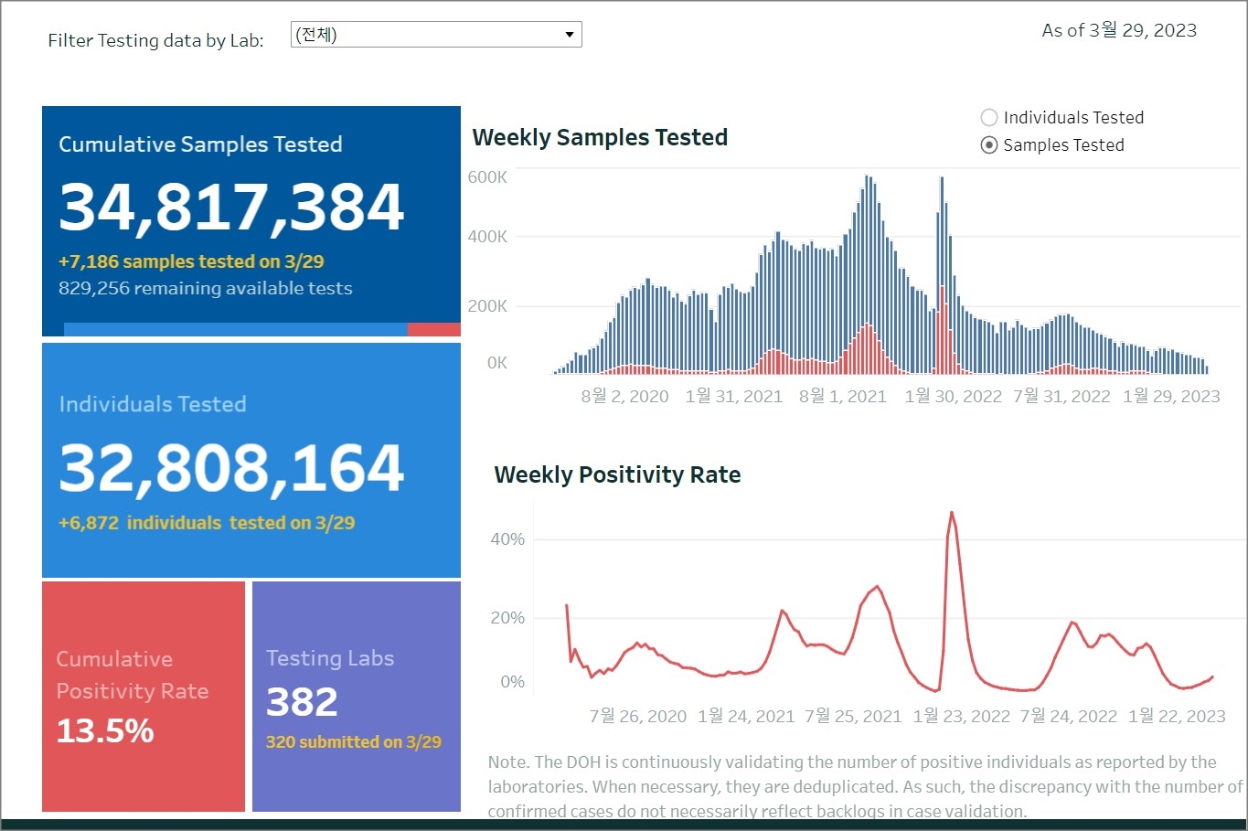 필리핀 코로나19 확진자 현황과 백신 예방접종 현황(2023년 3월 30일 현재)