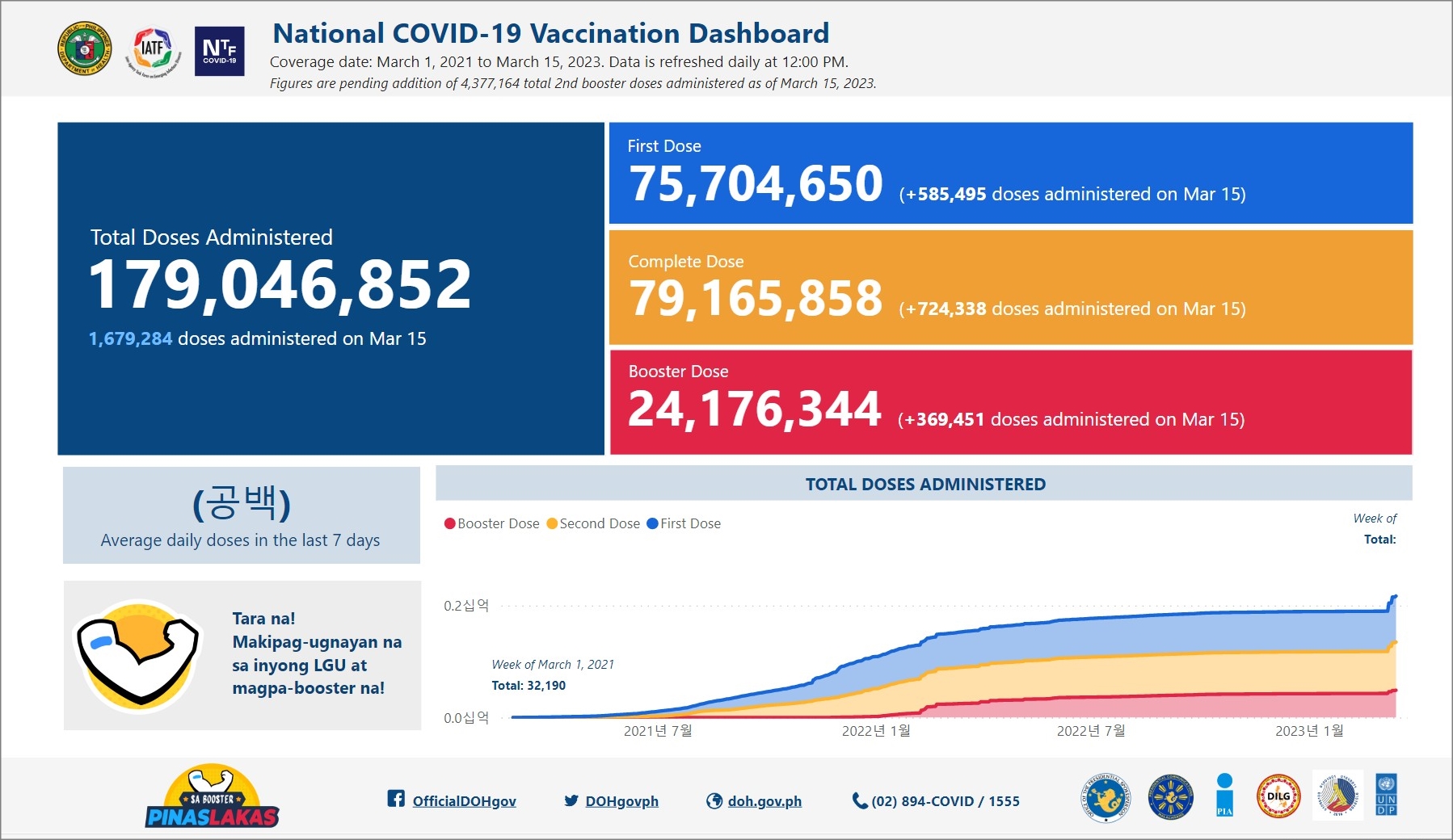 필리핀 코로나19 백신 예방접종 현황 (2023년 3월 15일 현재)