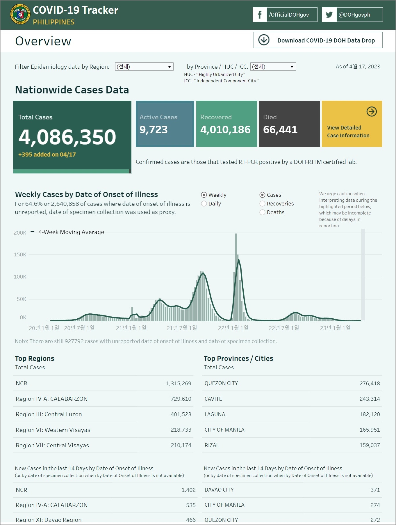 필리핀 코로나19 발생 현황 (2023년 4월 17일 현재)