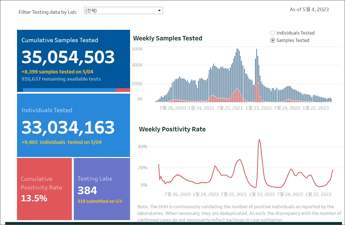 필리핀 코로나19 확진자 현황과 백신 예방접종 현황(2023년 5월 5일 현재)