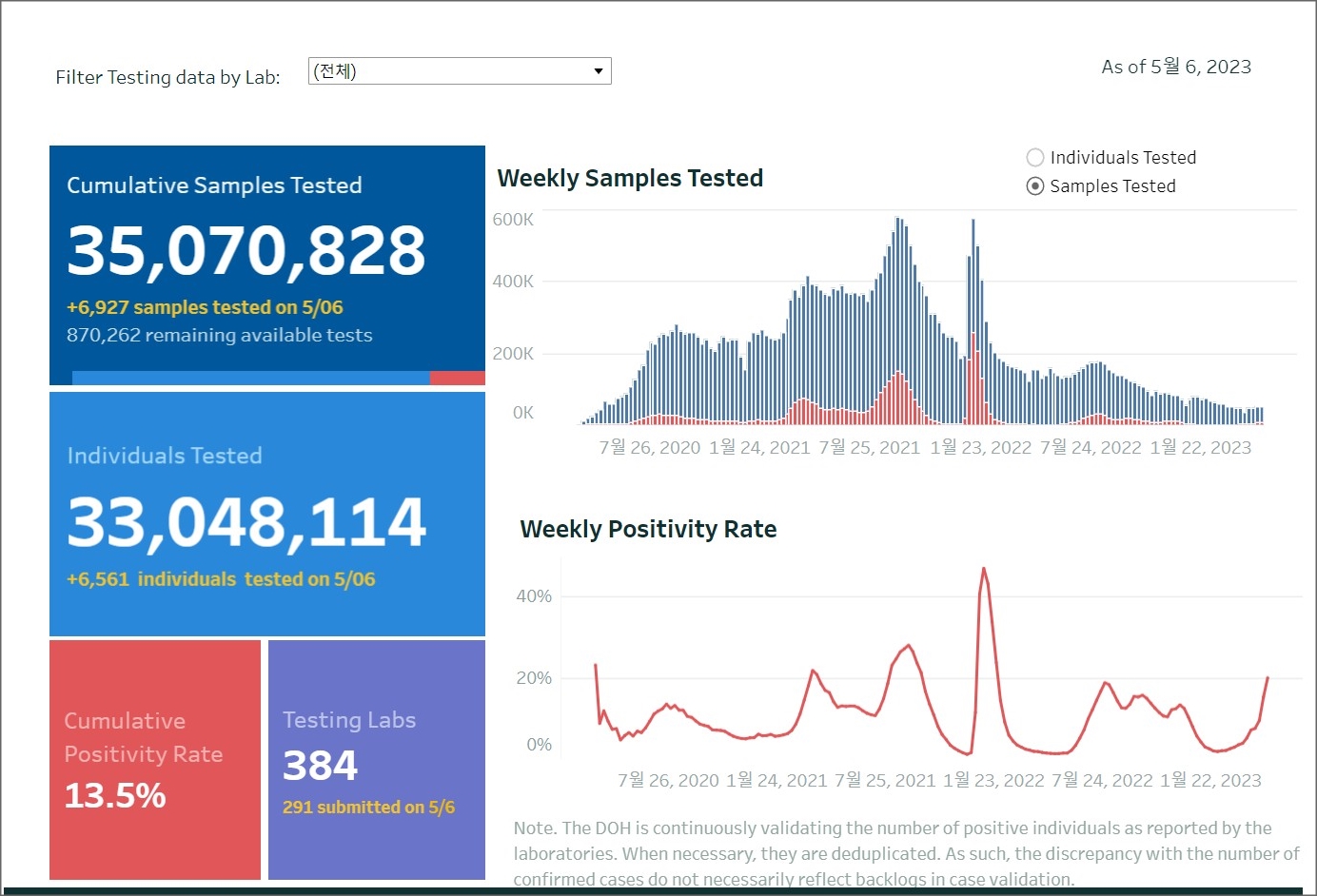 필리핀 코로나19 확진자 현황과 백신 예방접종 현황(2023년 5월 7일 현재)
