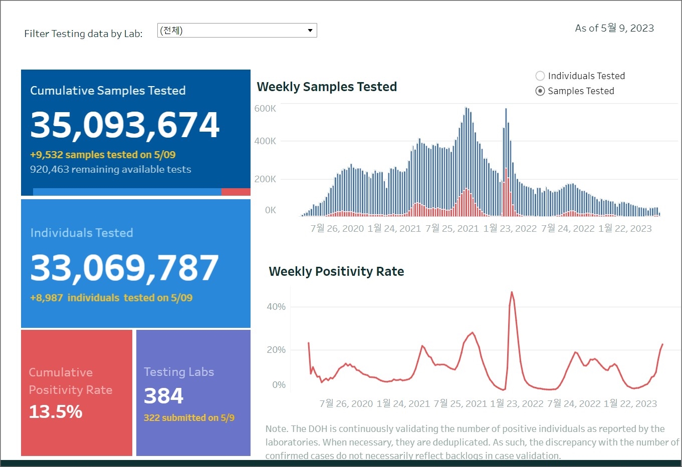 필리핀 코로나19 확진자 현황과 백신 예방접종 현황(2023년 5월 10일 현재)