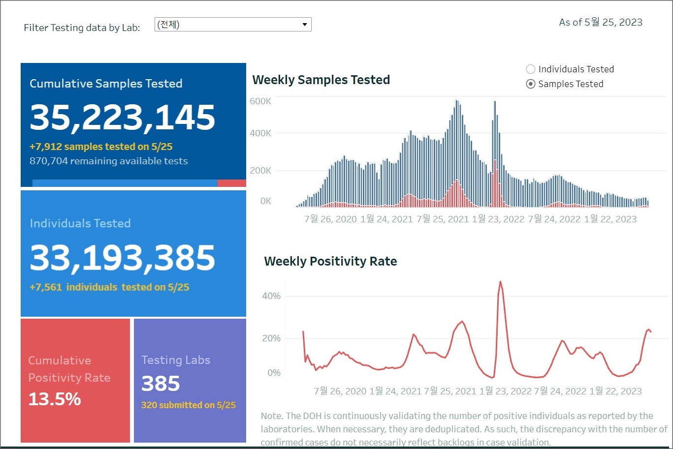 필리핀 코로나19 확진자 현황과 백신 예방접종 현황(2023년 5월 26일 현재)