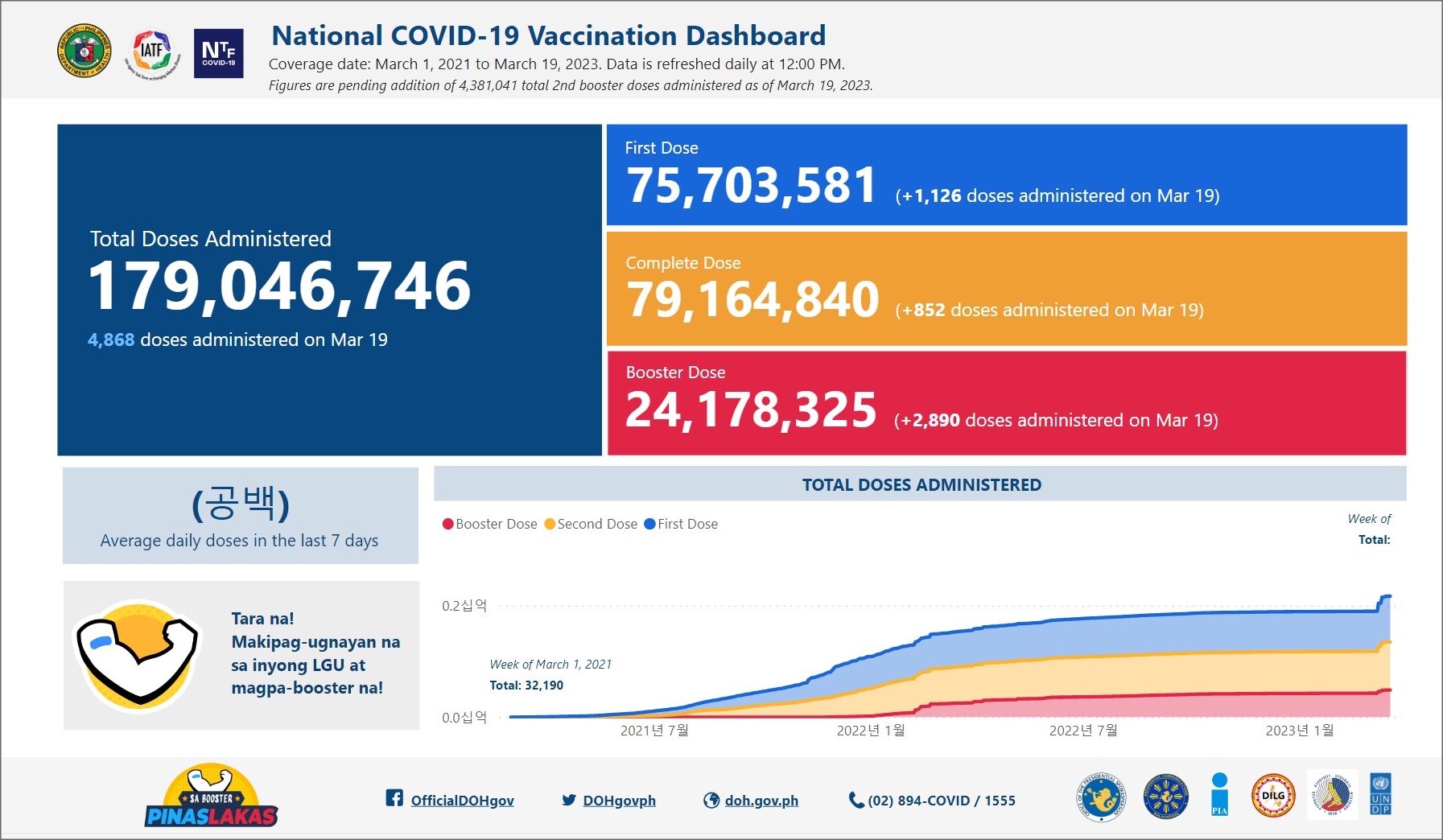 필리핀 코로나19 백신 예방접종 현황 (2023년 3월 19일 현재)