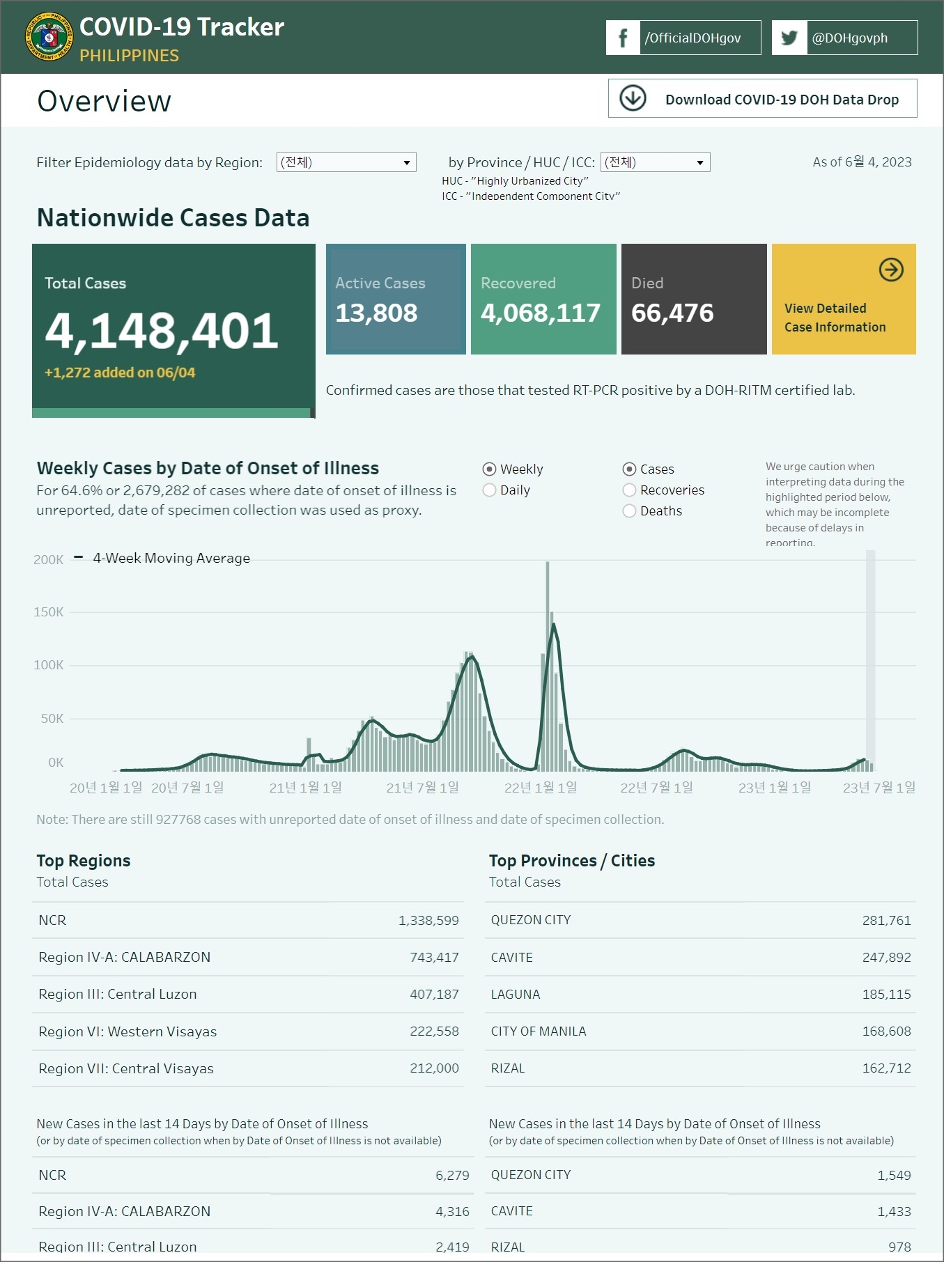 필리핀 코로나19 발생 현황 (2023년 6월 4일 현재)