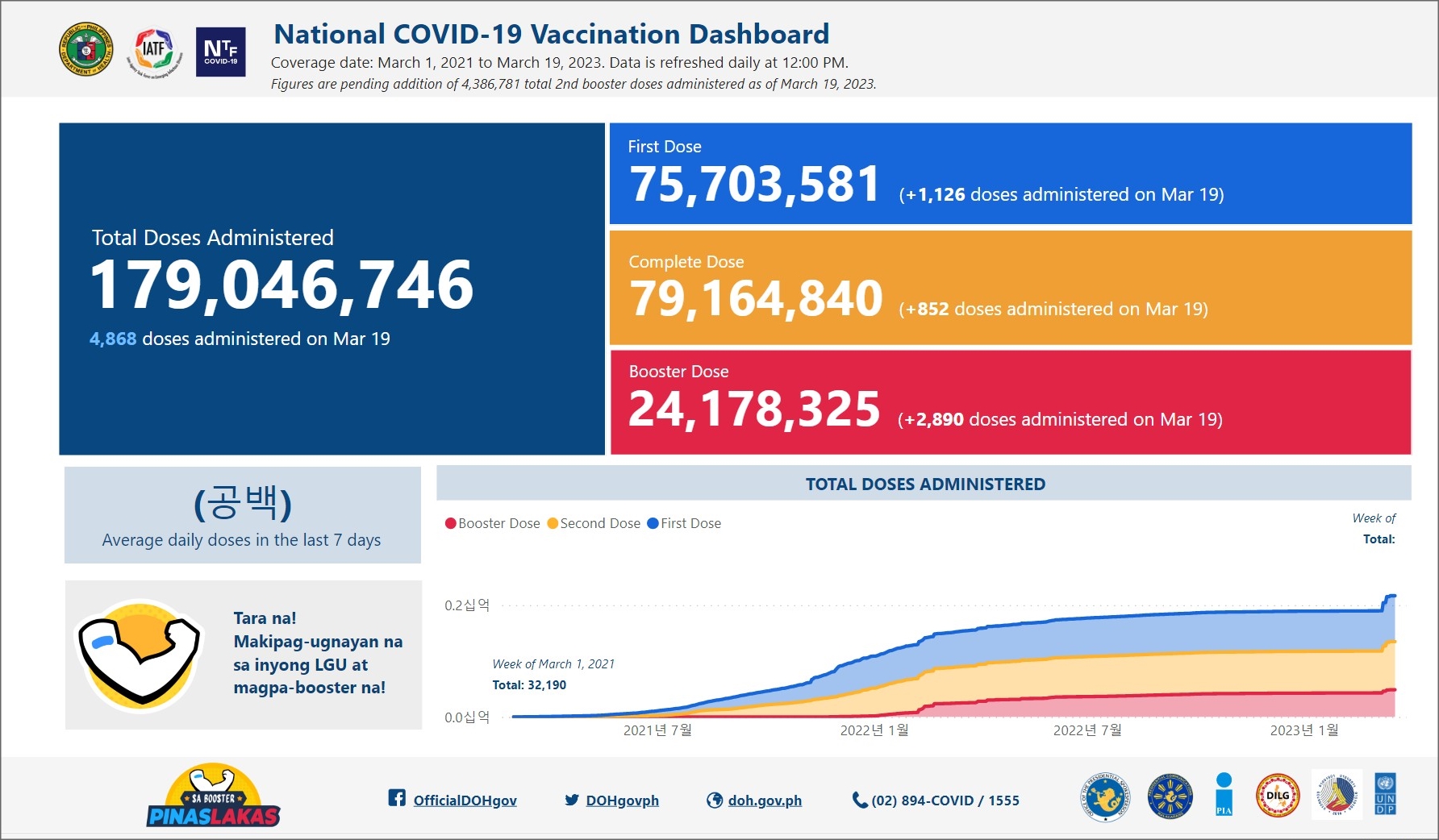 필리핀 코로나19 백신 예방접종 현황 (2023년 3월 19일 현재)