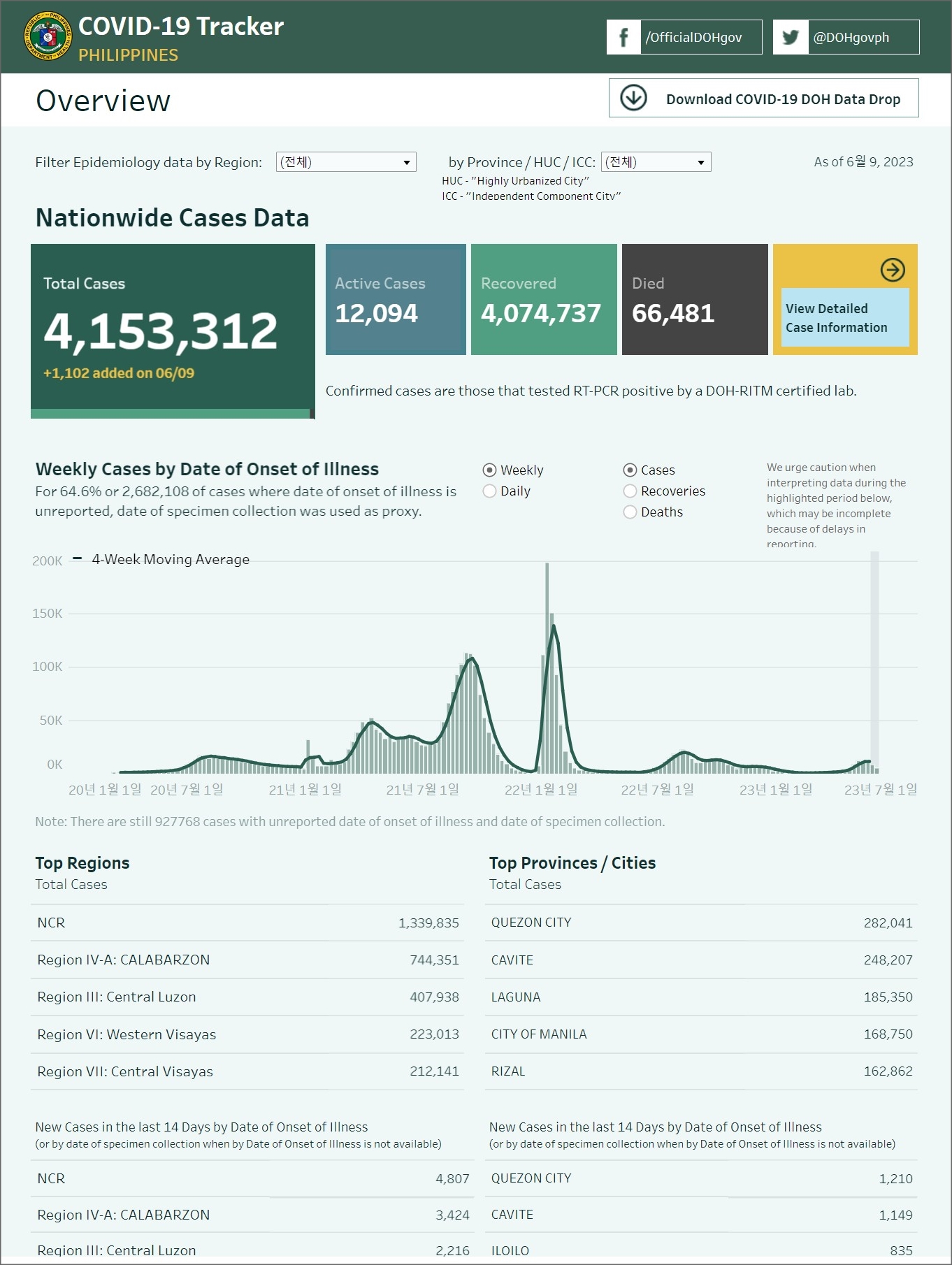 필리핀 코로나19 발생 현황 (2023년 6월 9일 현재)
