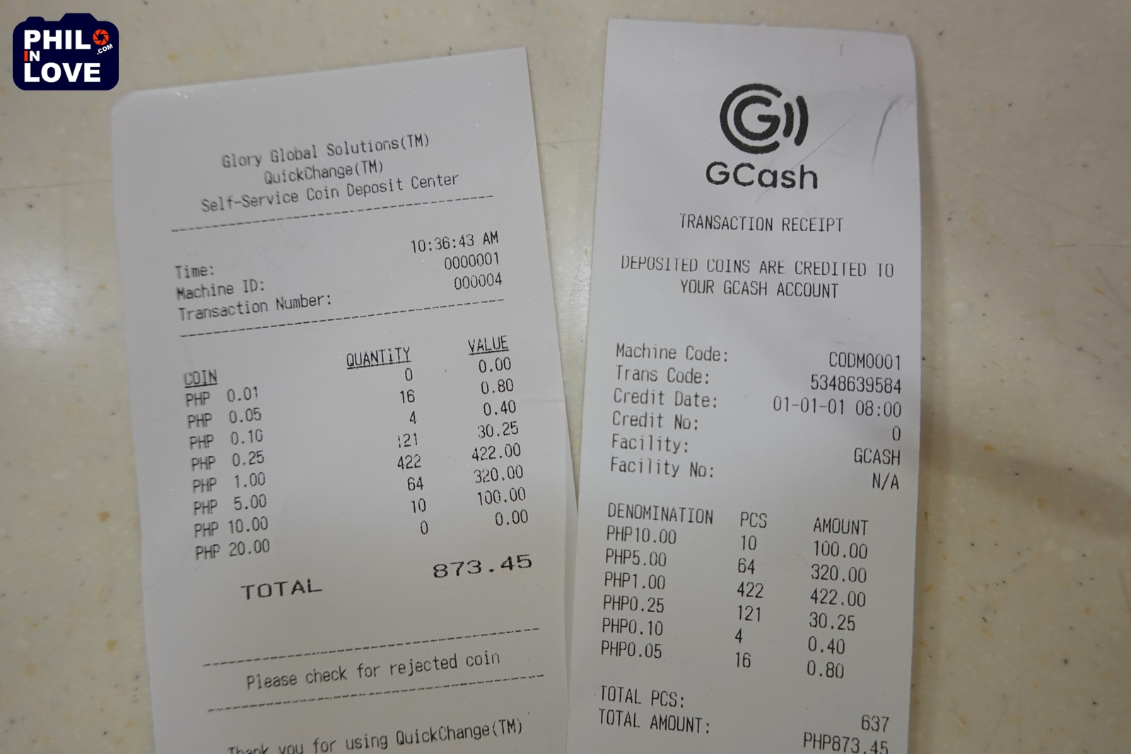 필리핀 마닐라에서 생활하면서 재래시장을 다니다 보면 동전이 생길 수밖에 없다. 집 어딘가에 페소와 센타보 동전을 잔뜩 가지고 있다면 몰 오브 아시아나 메가몰 등에 갔을 때 동전을 지캐시로 교환하여 사용해 보자. 필리핀 중앙은행(BSP)에서 운영하는 동전교환기(CoDM)를 이용하여 동전을 지캐시(GCash)로 교환할 수 있다.