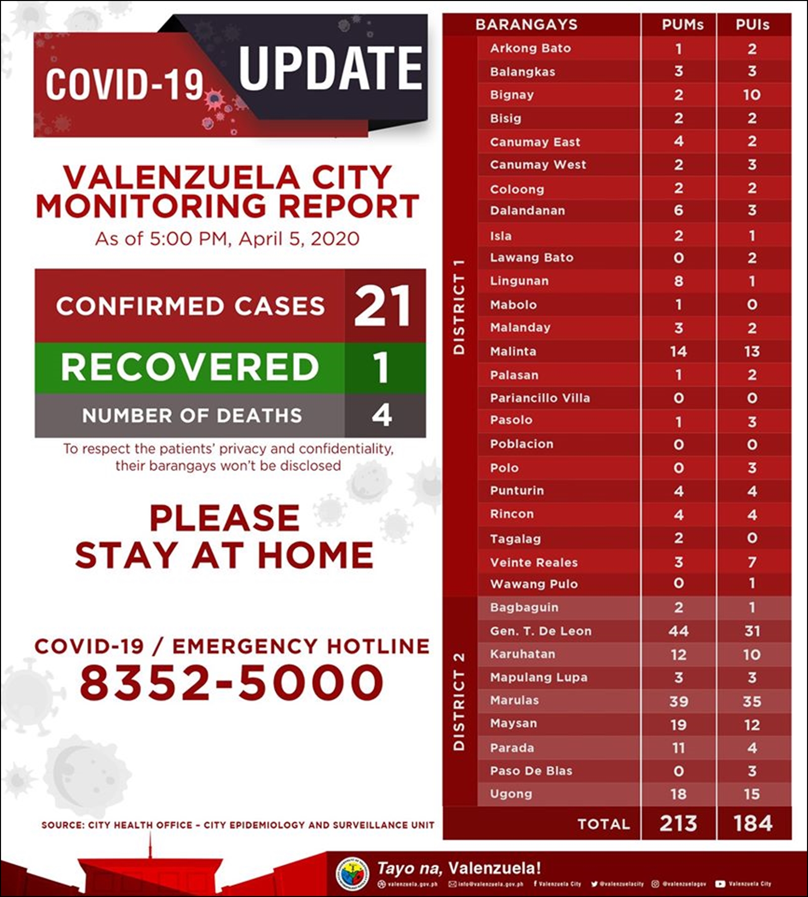 - 필리핀 보건부(DOH)에서 발표한 확진자 현황과 각 시(City) 또는 구(Municipality)에서 공식 SNS에 올린 '코로나19 확진자 현황'은 일치하지 않는다.