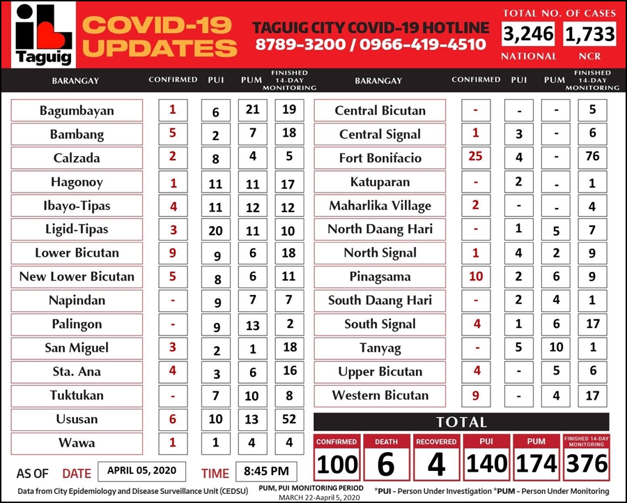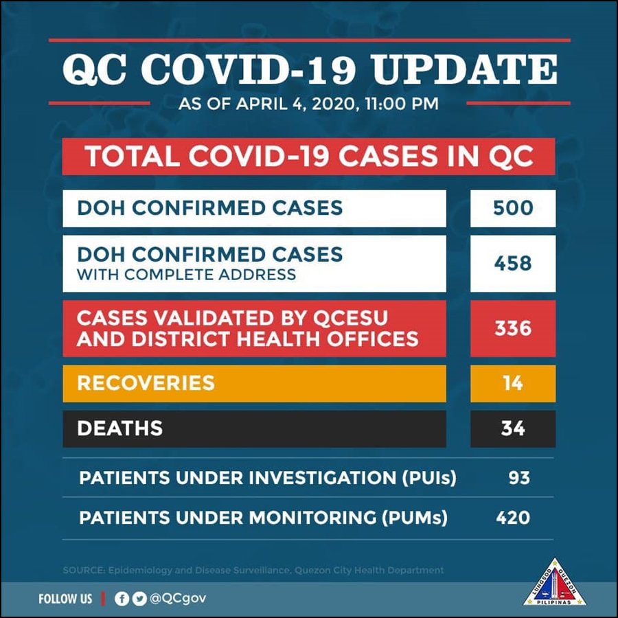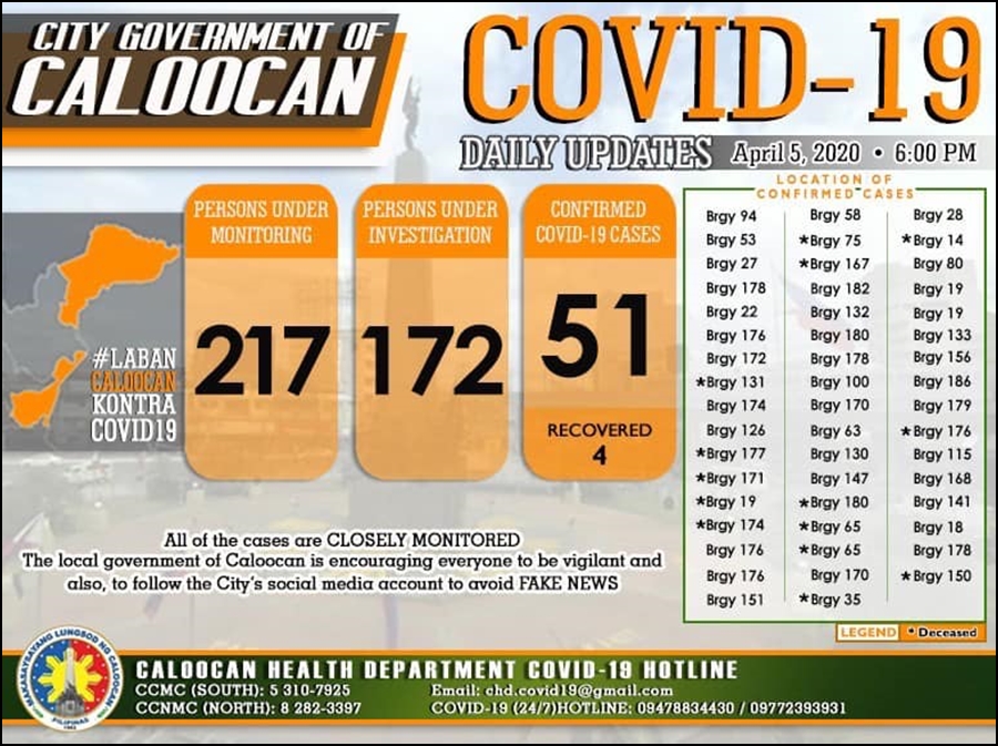 필리핀 보건부에서 발표한 자료에 따르면 4월 5일 현재 필리핀 내 코로나19 확진자 수는 3,246명이다. 확진자의 절반 가량은 메트로 마닐라 지역에 있다.