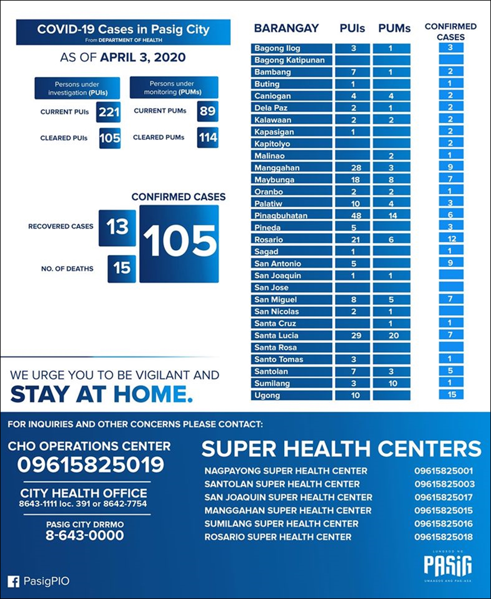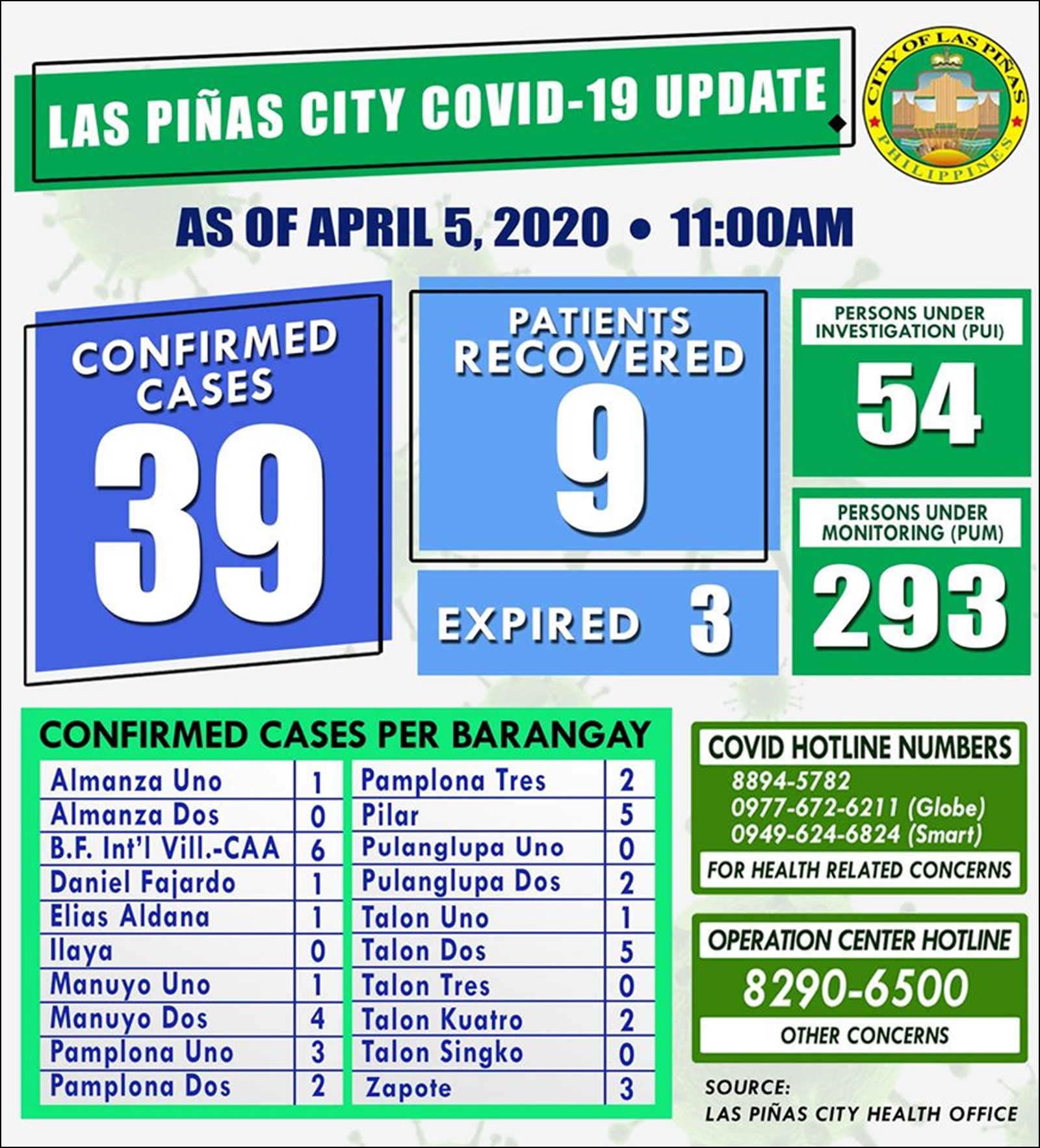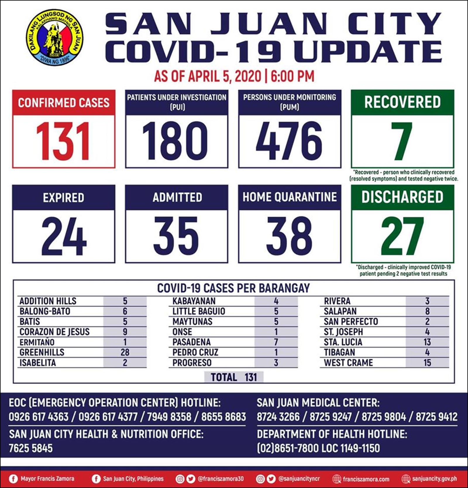 - 필리핀 보건부(DOH)에서 발표한 확진자 현황과 각 시(City) 또는 구(Municipality)에서 공식 SNS에 올린 '코로나19 확진자 현황'은 일치하지 않는다.