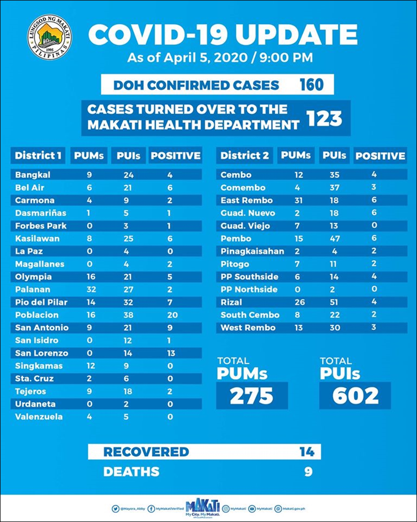 보건부 발표 | 시(City) 또는 구(Municipality)의 발표 | ||||