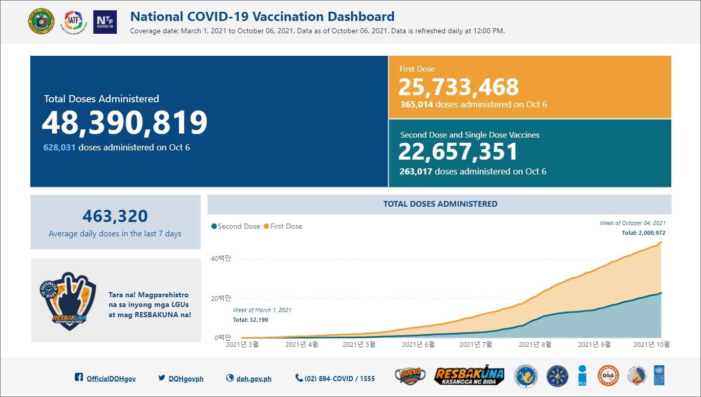 ■ 필리핀 코로나19 백신 예방접종 현황 (2021년 10월 6일 기준)