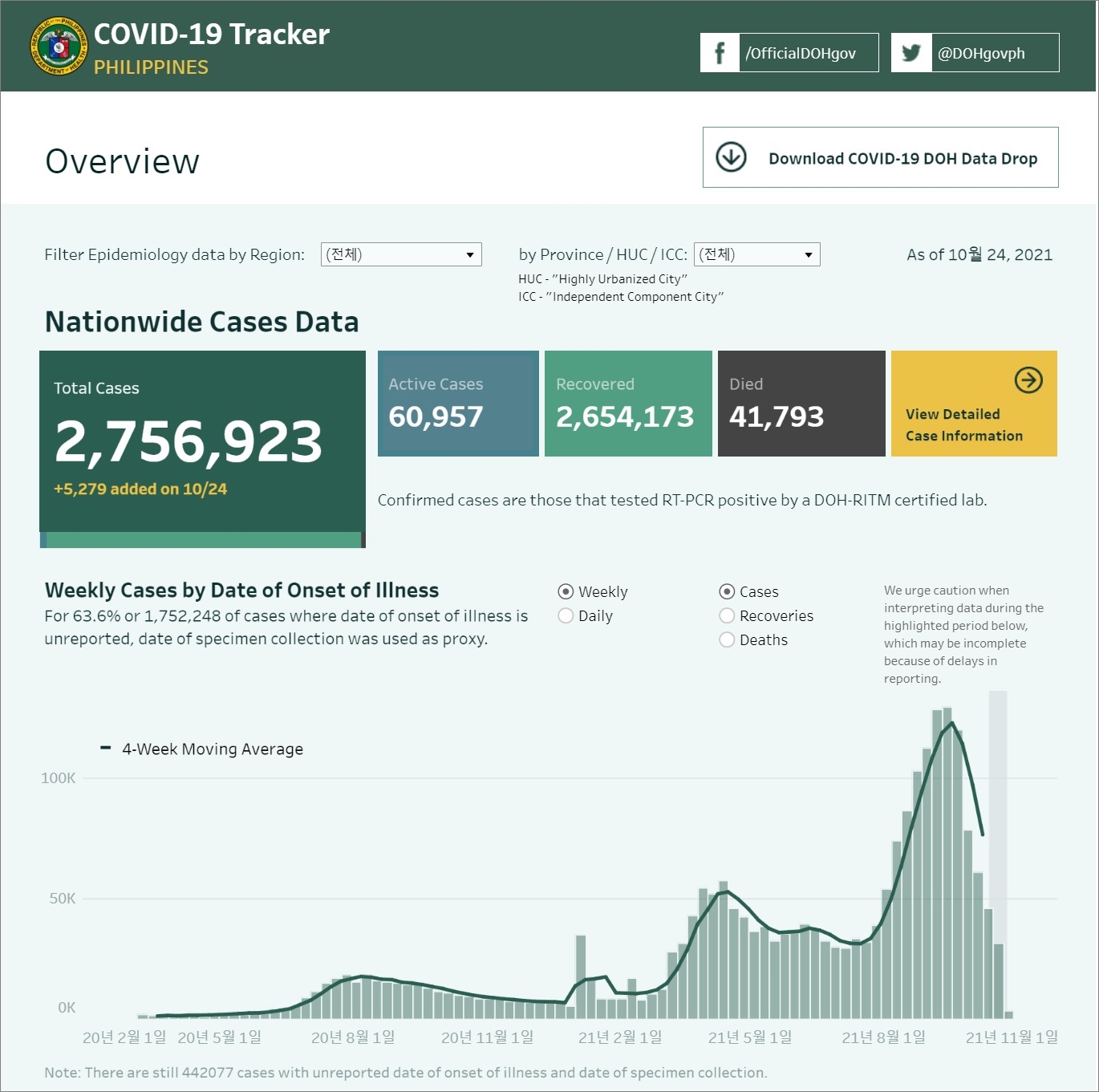 · 필리핀 보건부(DOH. Department of Health) : https://ncovtracker.doh.gov.ph/