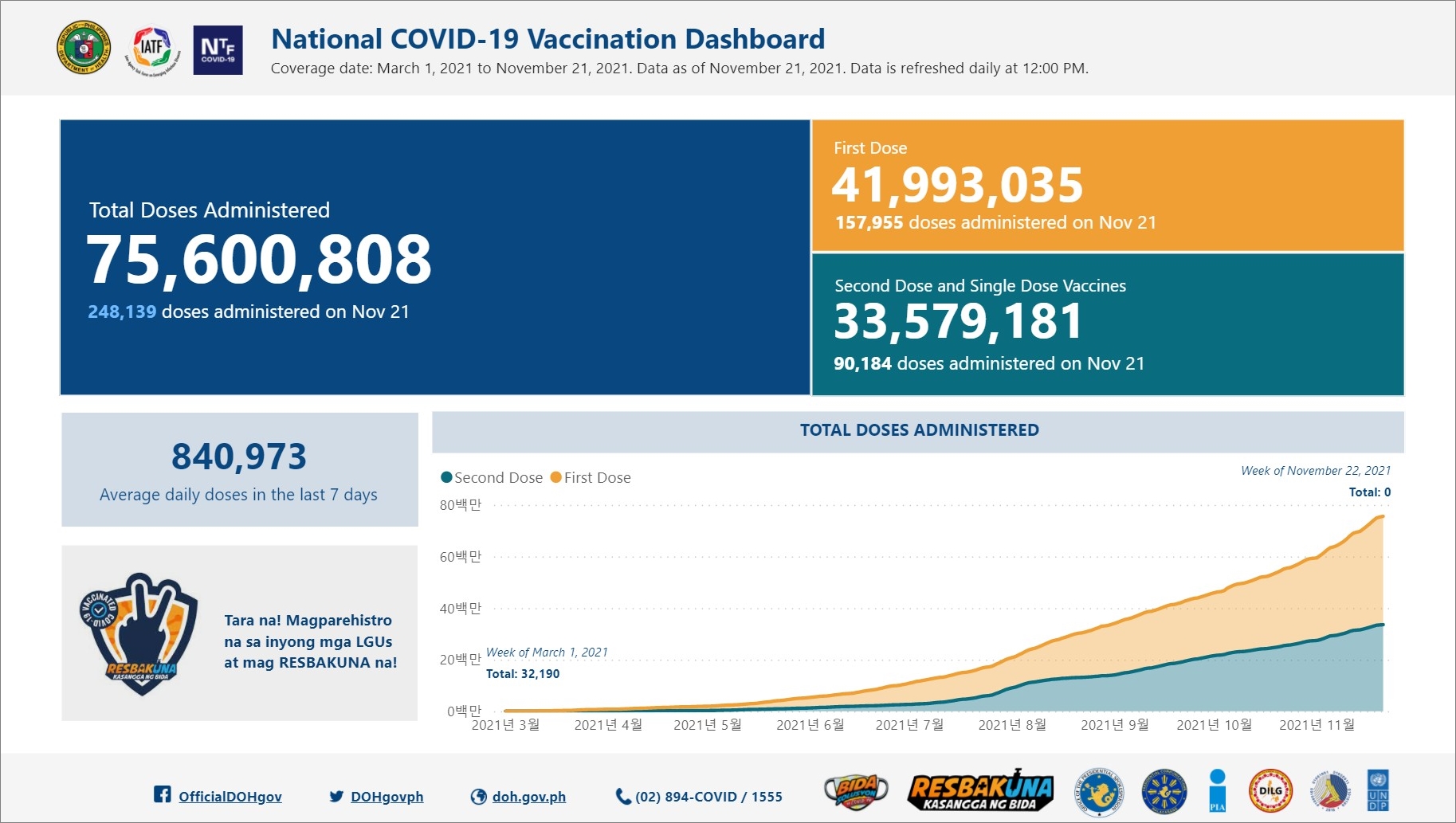 필리핀 코로나19 백신 예방접종 현황 (2021년 11월 21일 현재)