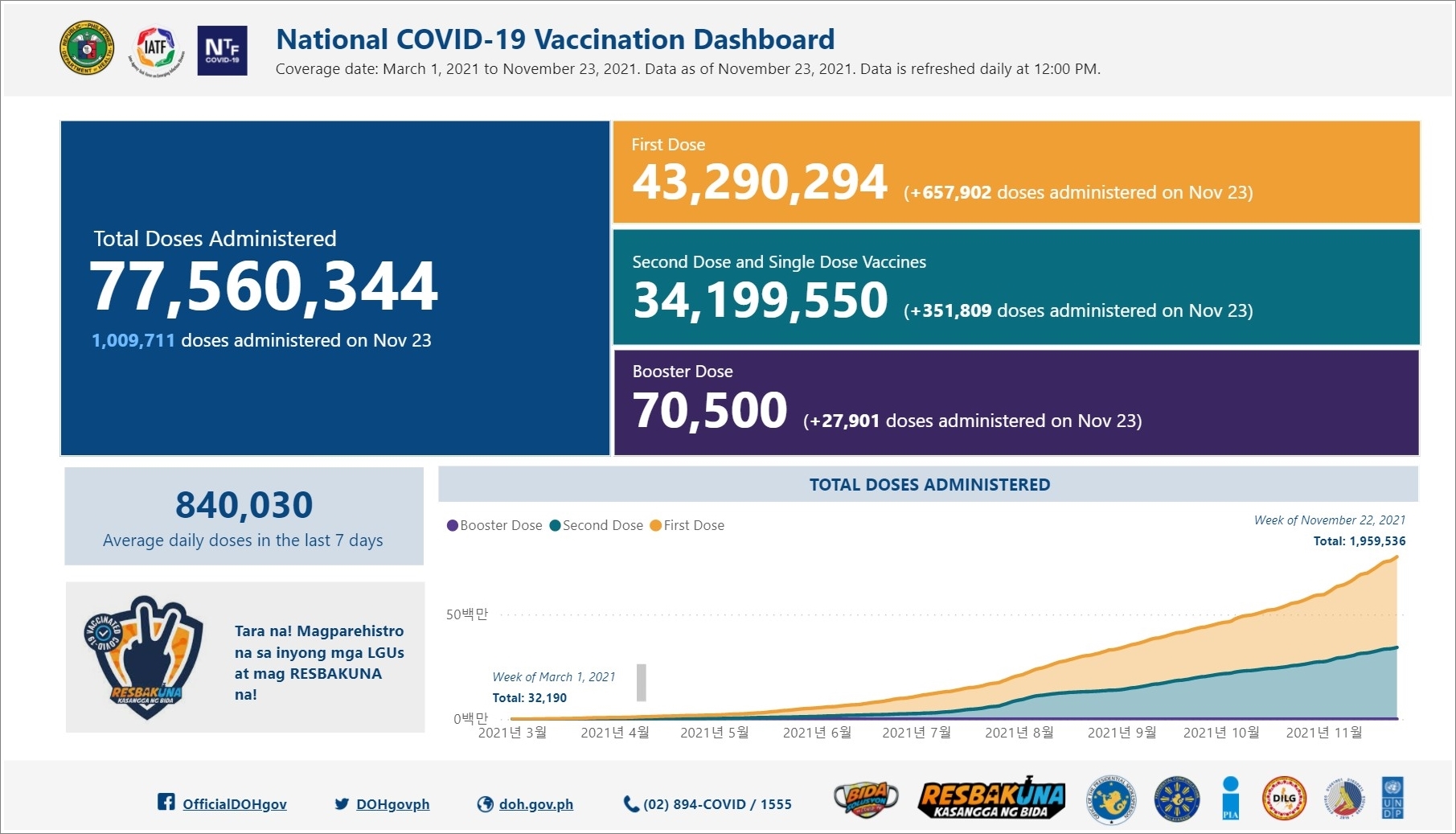 필리핀 코로나19 백신 예방접종 현황 (2021년 11월 23일 현재)