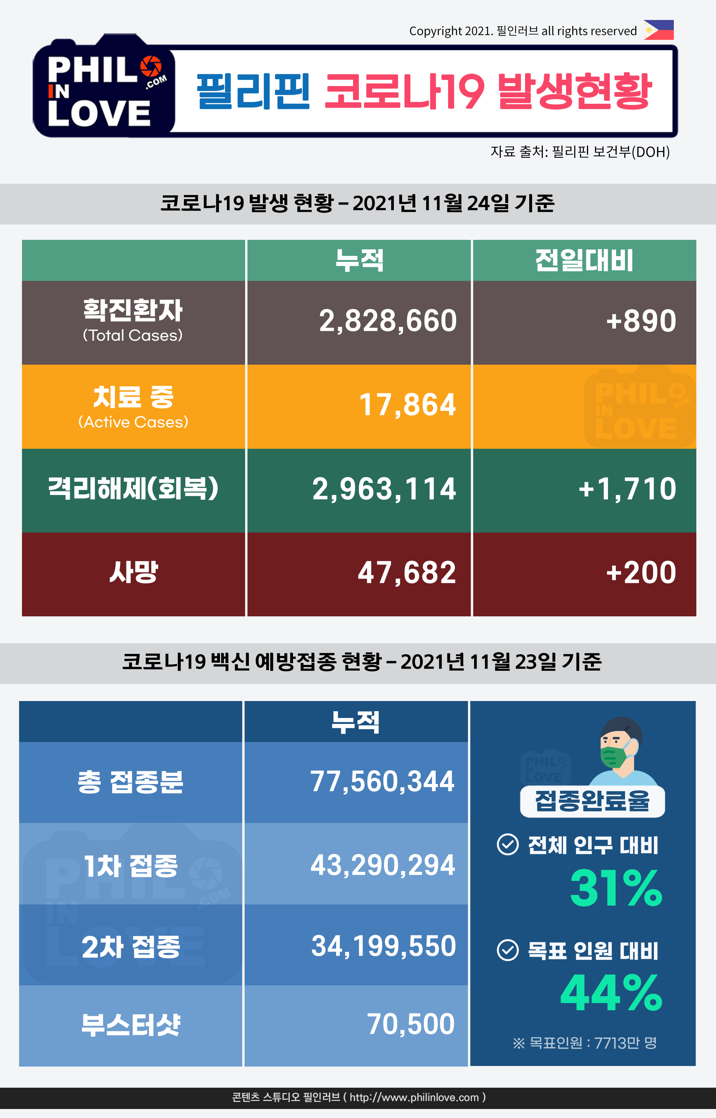 필리핀 코로나19 발생 현황 (2021년 11월 24일 현재)
