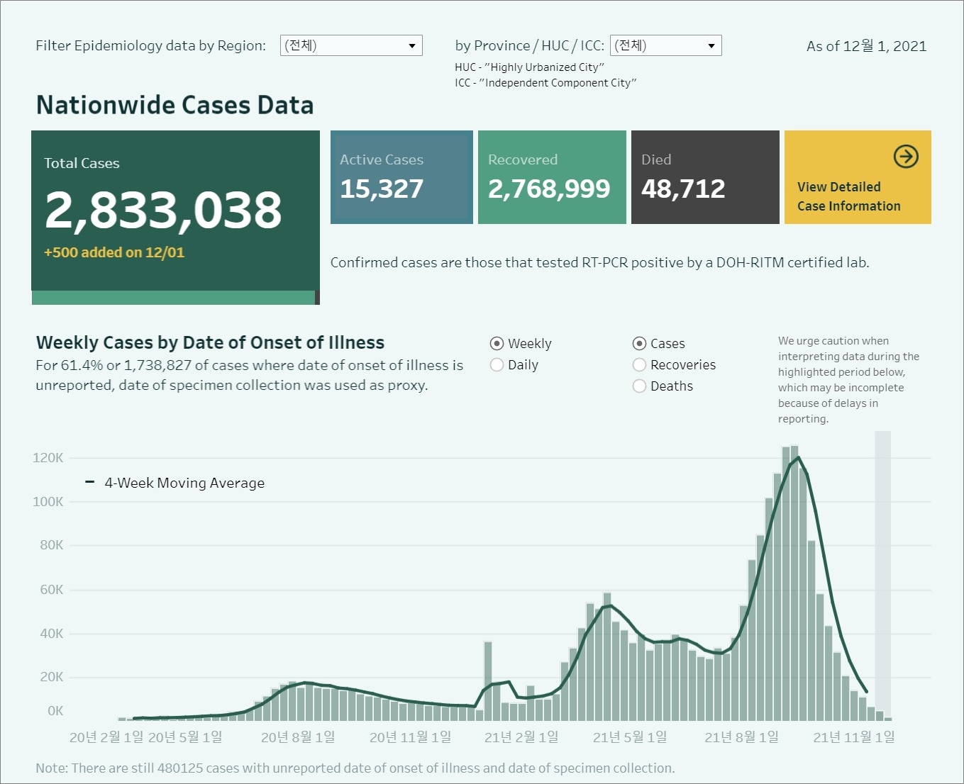 필리핀 코로나19 발생 현황 (2021년 12월 1일 현재)