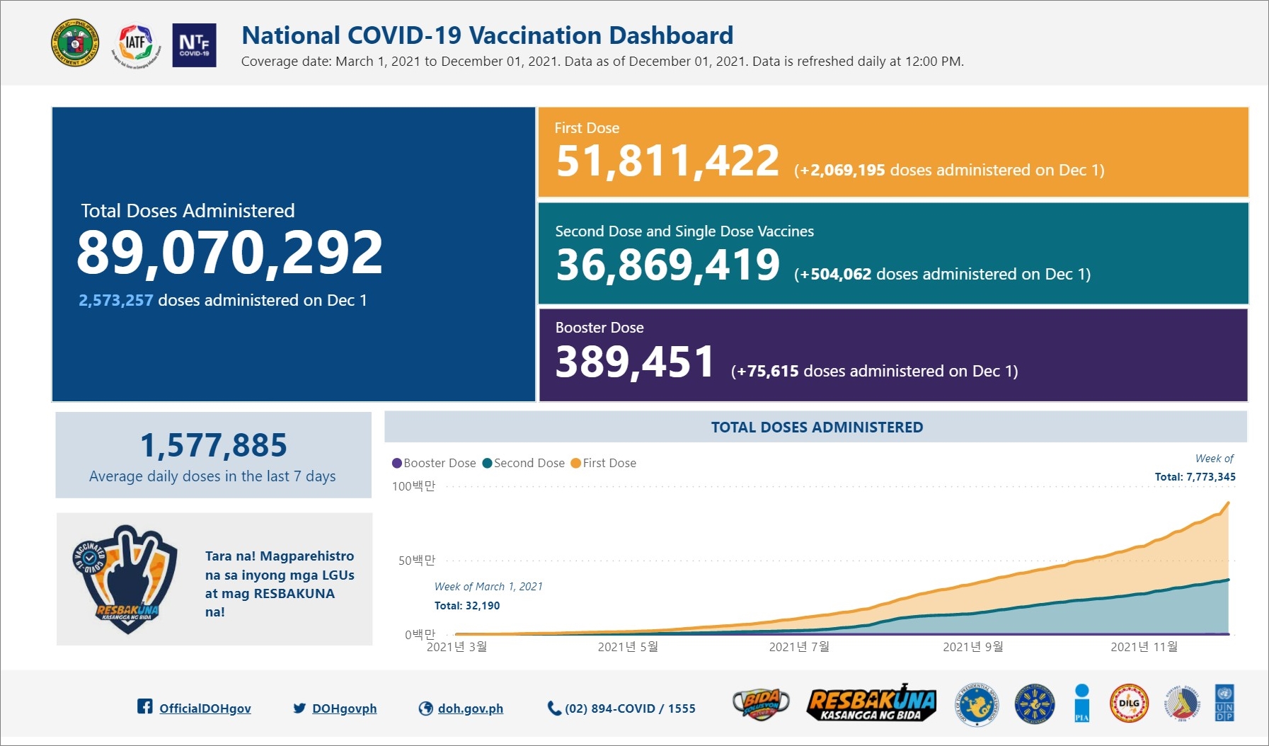필리핀 코로나19 백신 예방접종 현황 (2021년 12월 1일 현재)