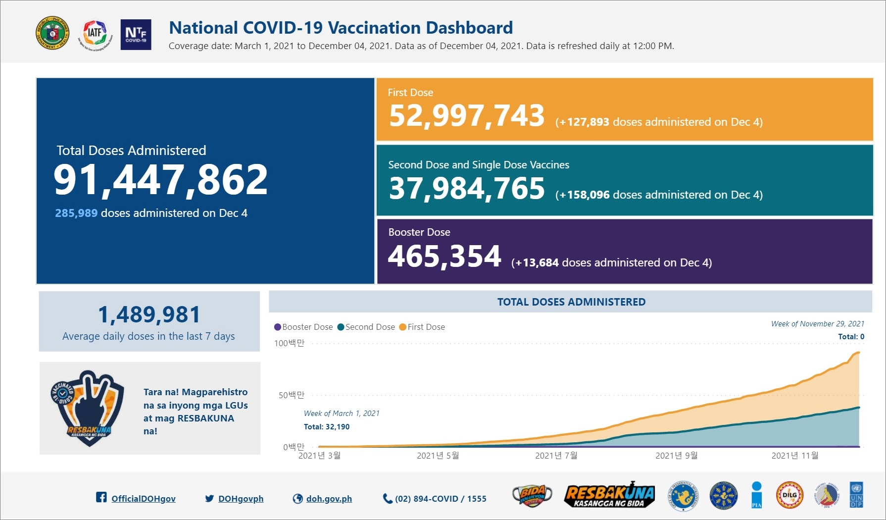 필리핀 코로나19 백신 예방접종 현황 (2021년 12월 4일 현재)