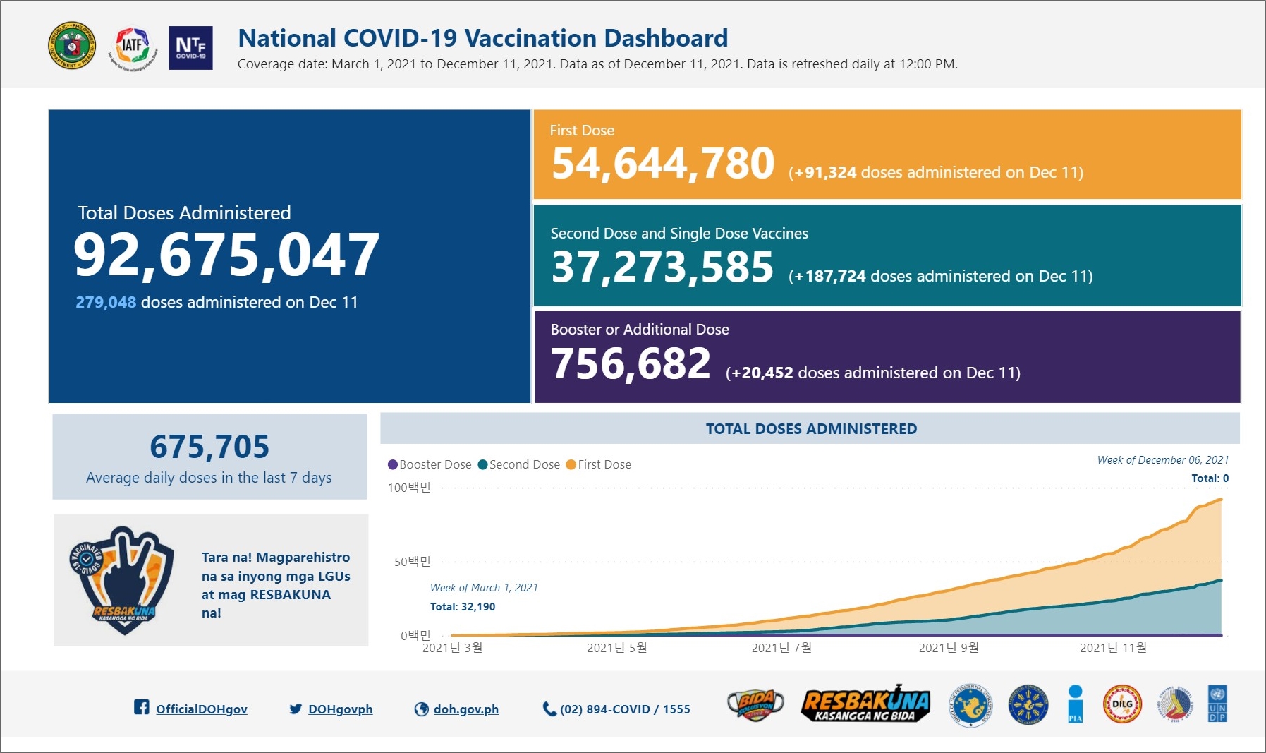 필리핀 코로나19 백신 예방접종 현황 (2021년 12월 11일 현재)