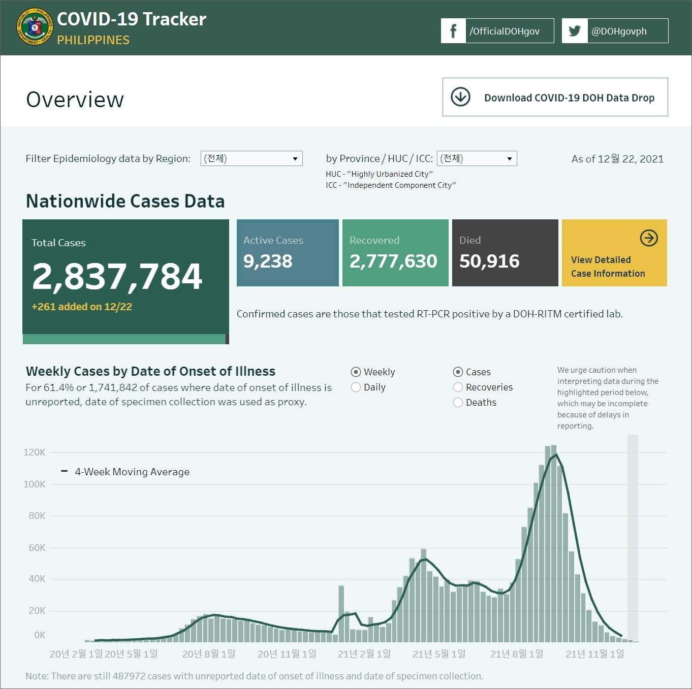 · 필리핀 보건부(DOH. Department of Health) : https://ncovtracker.doh.gov.ph/