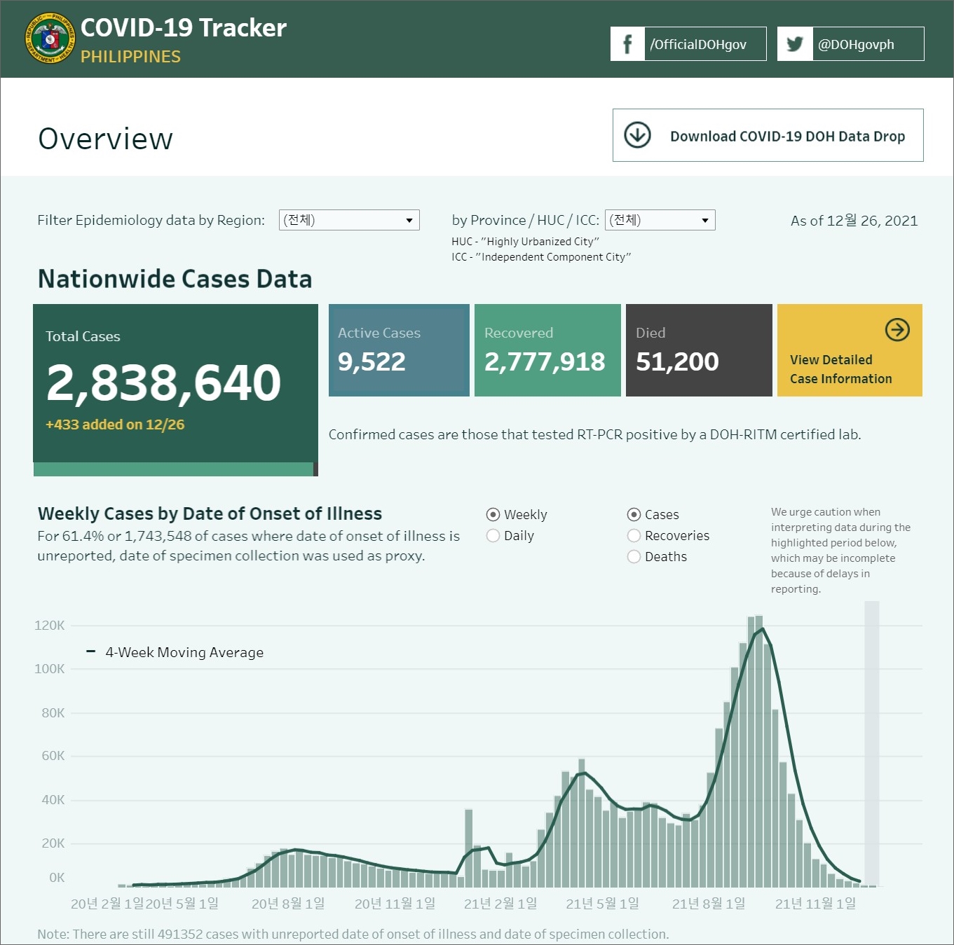 필리핀 코로나19 발생 현황 (2021년 12월 26일 현재)