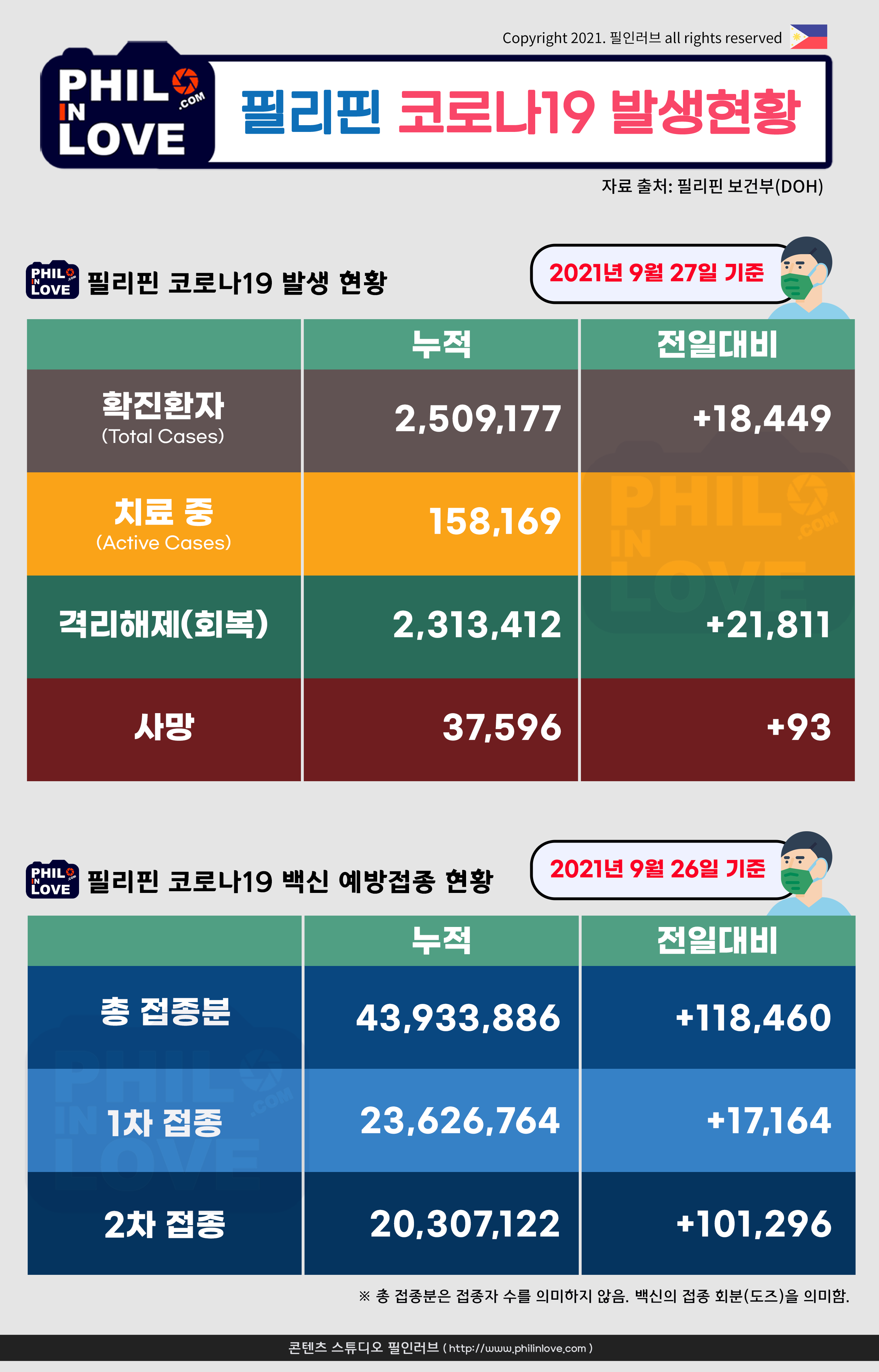 | 필리핀 코로나19 확진자 현황과 백신 예방접종 현황(2021년 9월 28일 현재) (0) | 2021.09.28 |