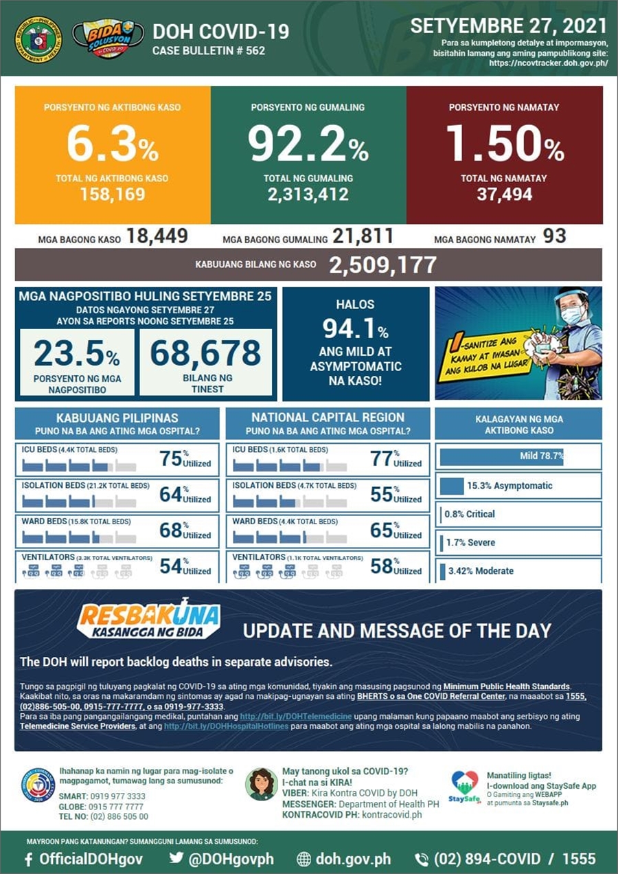 ■ 필리핀 코로나19 발생 현황 (2021년 9월 27일 기준)