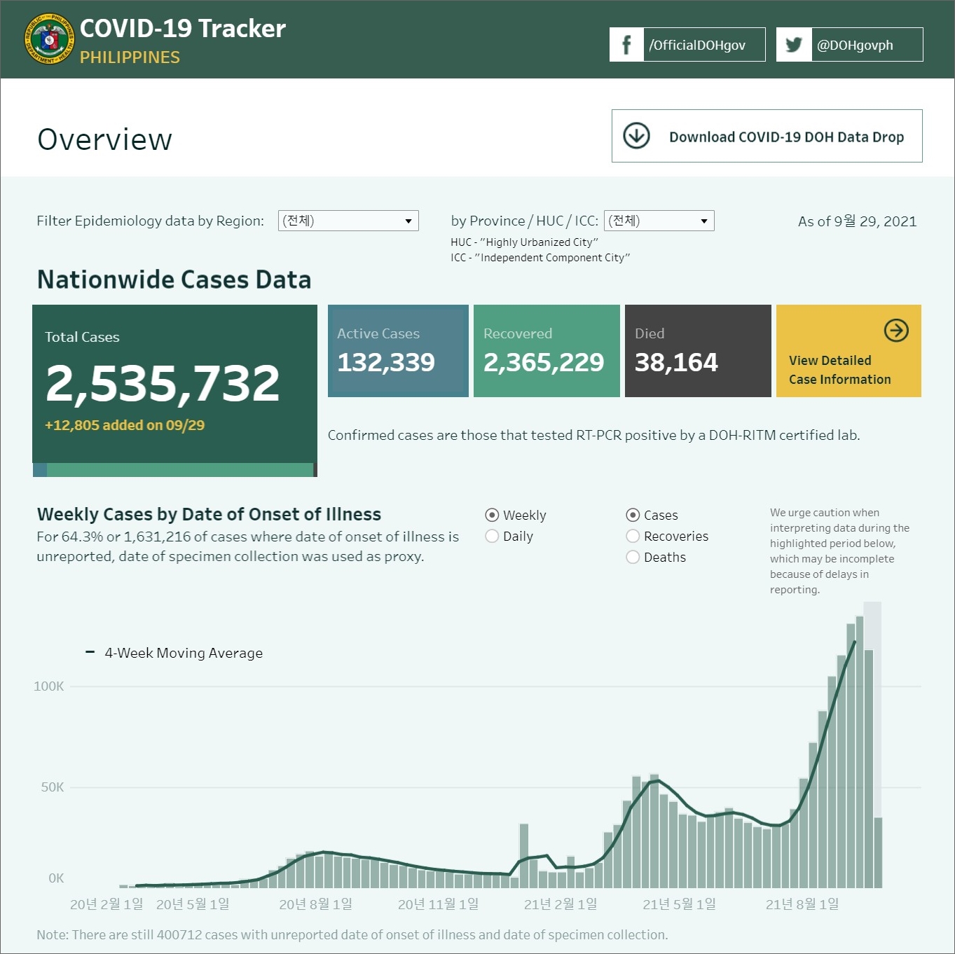 | 필리핀 코로나19 확진자 현황과 백신 예방접종 현황(2021년 9월 28일 현재) (0) | 2021.09.28 |