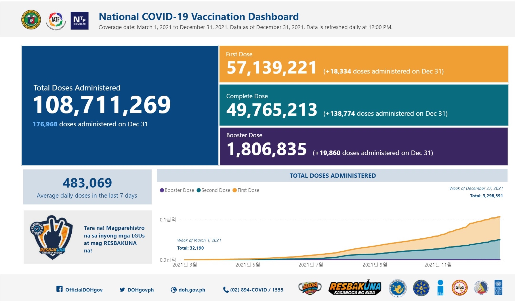 필리핀 코로나19 백신 예방접종 현황 (2021년 12월 31일 현재)